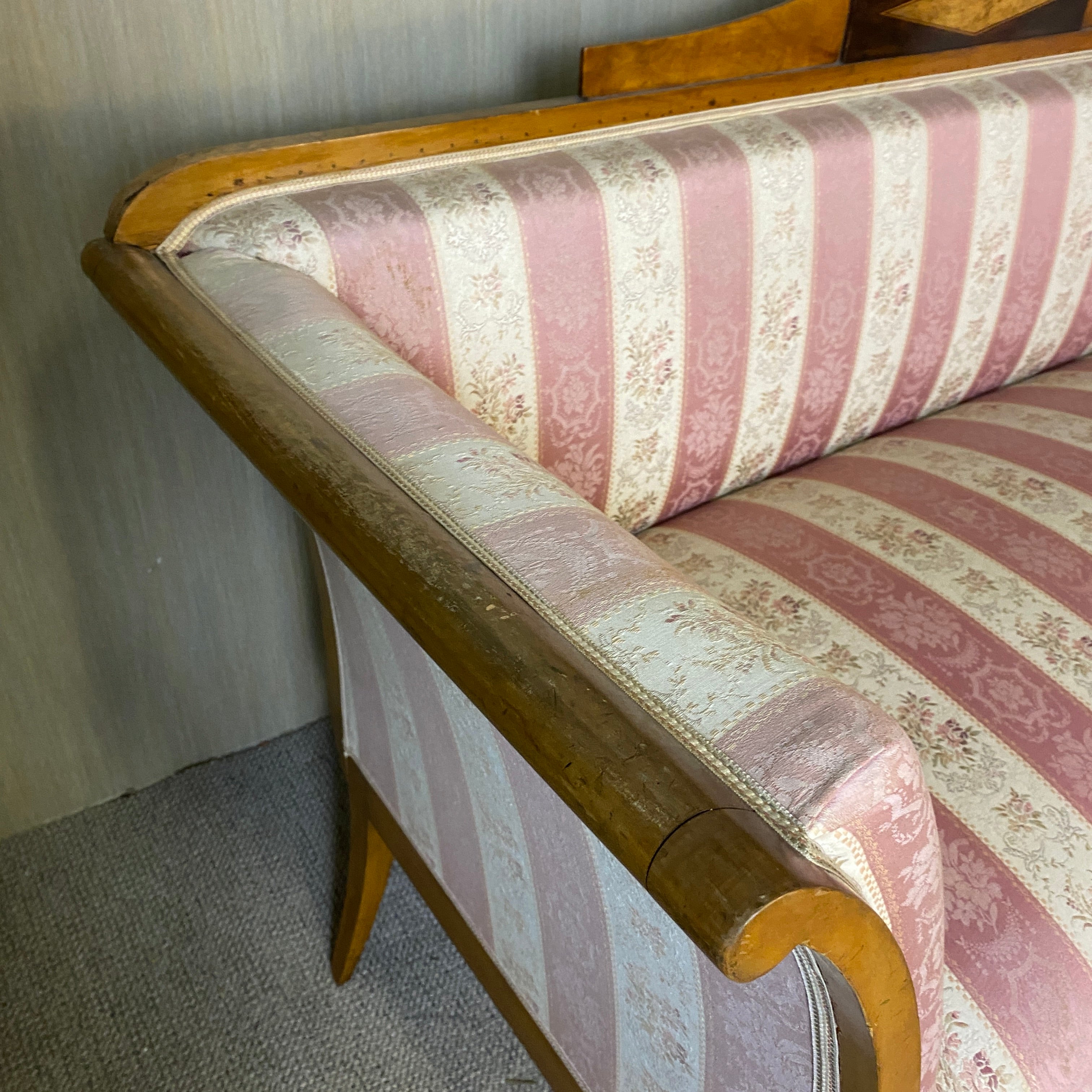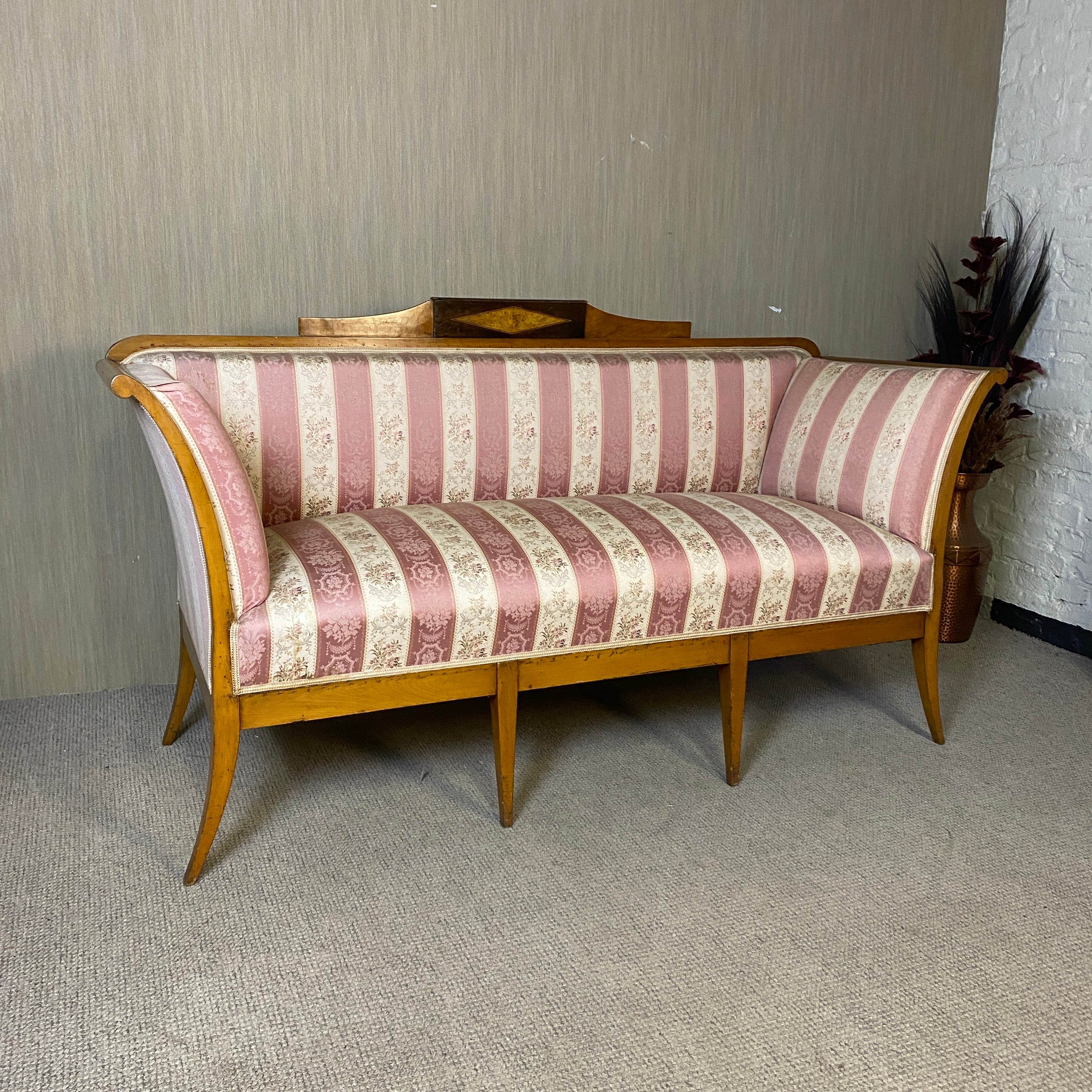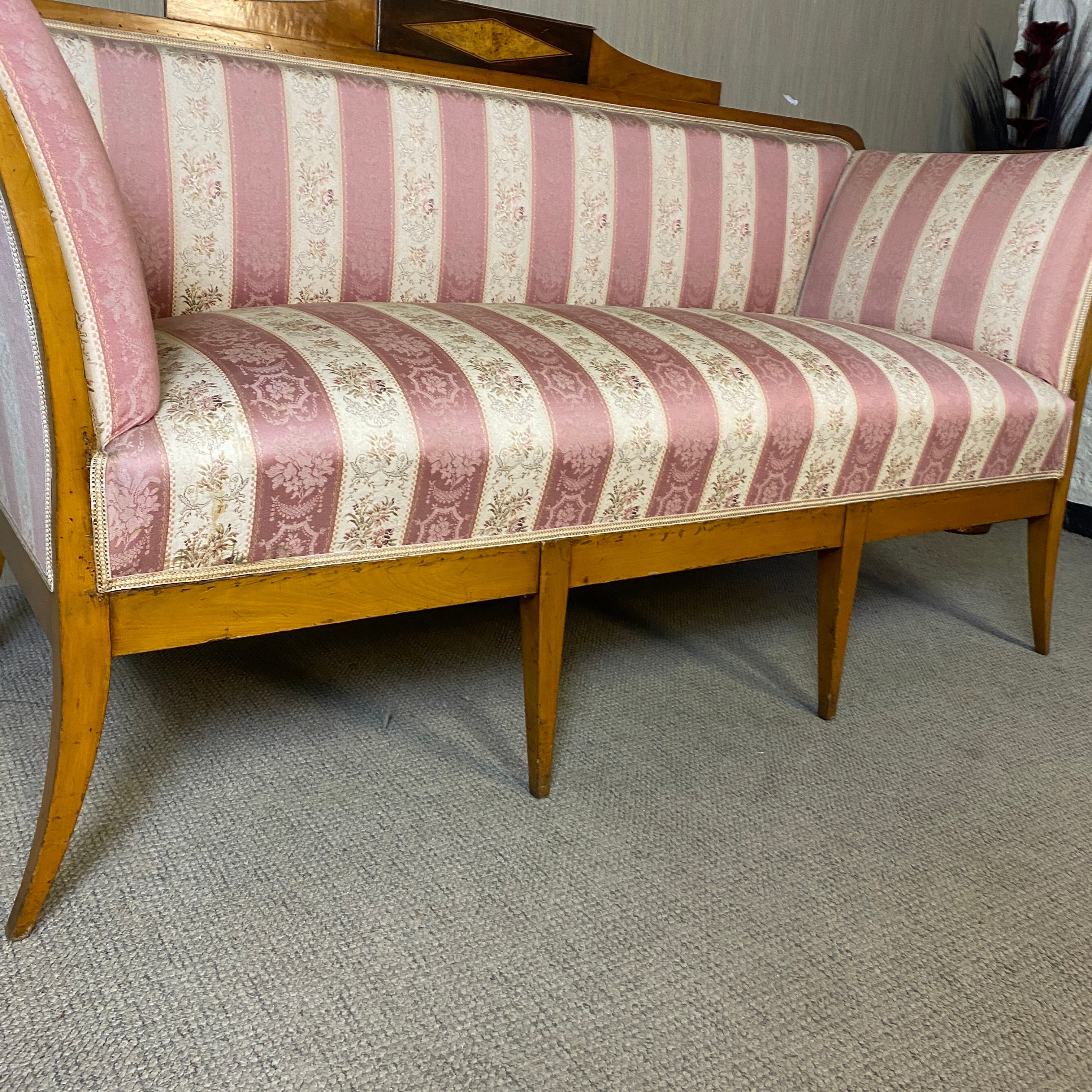 + Schlichtes Birkengestell auf konischen Beinen, Rücken mit Aufsatz.