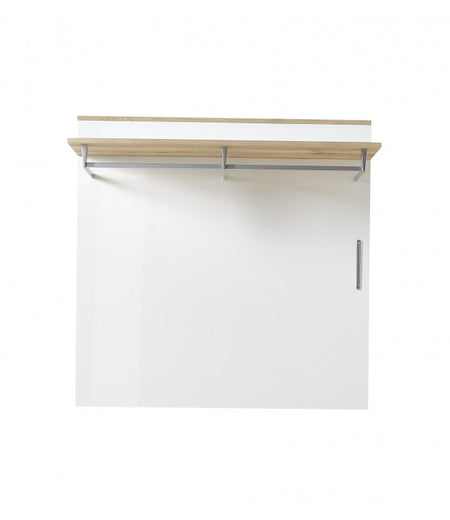 Produktdetails: Garderobenpaneel mit 1 Ablage, 1 Kleiderstange und 2 Klapphaken.