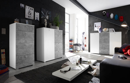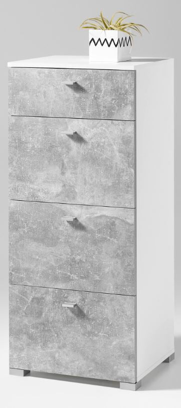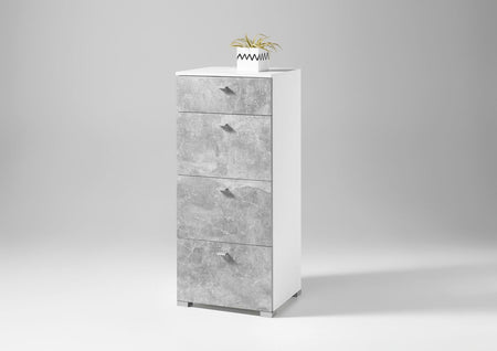 Produktdetails: Kommode mit 4 Schubkästen und einer zusätzlichen weißen Blende für den obersten Schubkasten