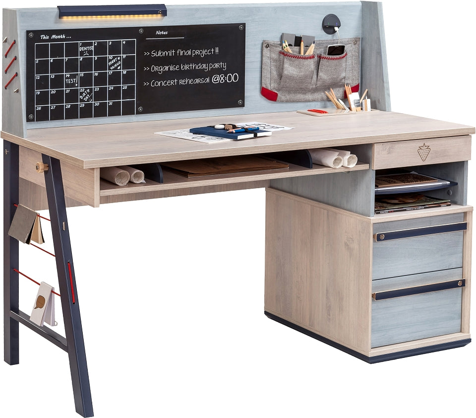 • Mit Leselampe, USB-Anschluss, Ablagefächer aus Stoff und Kreidetatafel mit Monatsübersicht