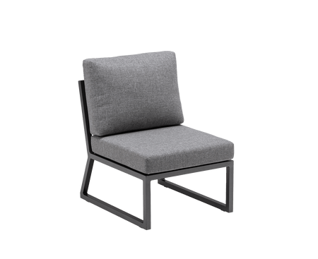 • • Solides, formschönes Aluminium-Gestell mit Armlehnen aus Teak