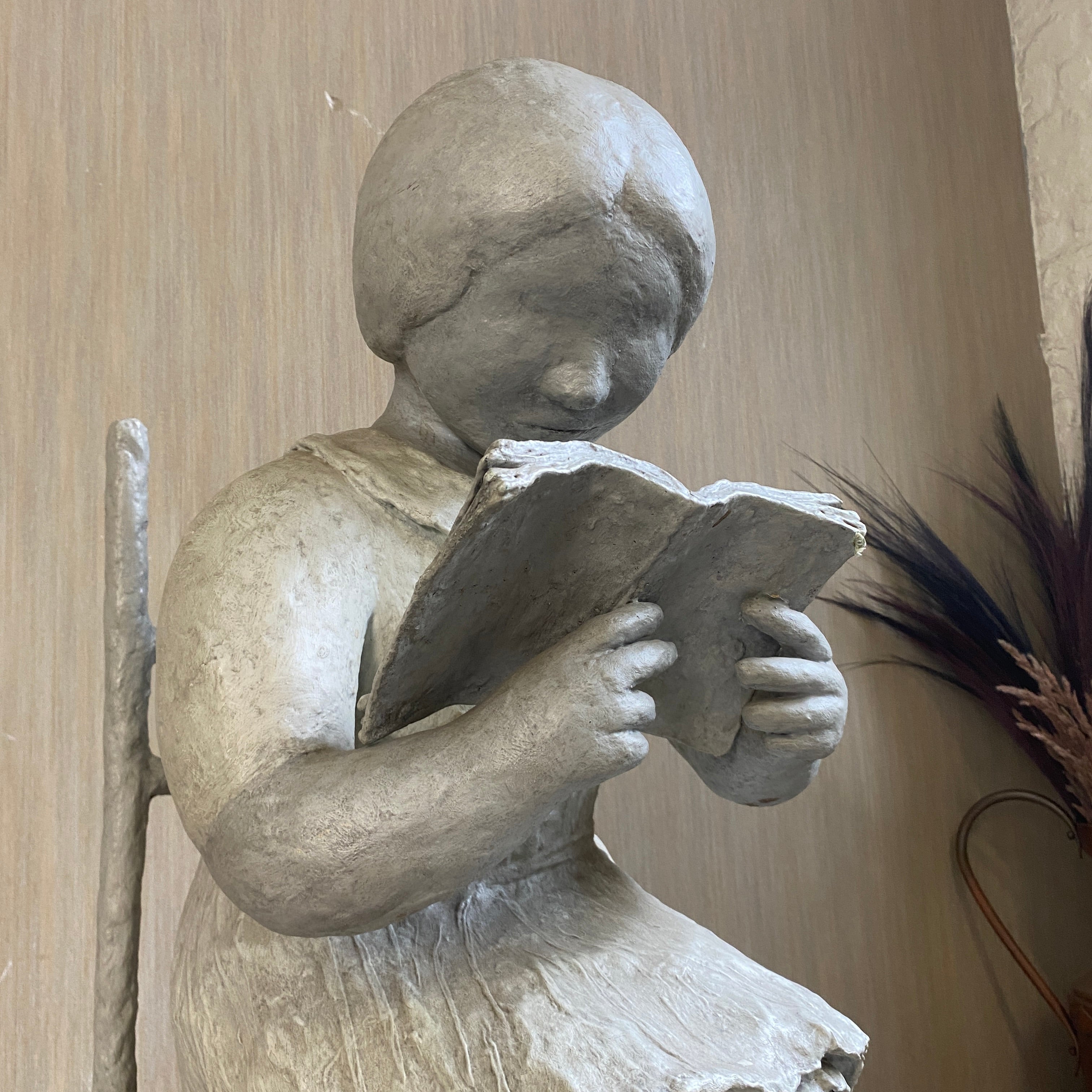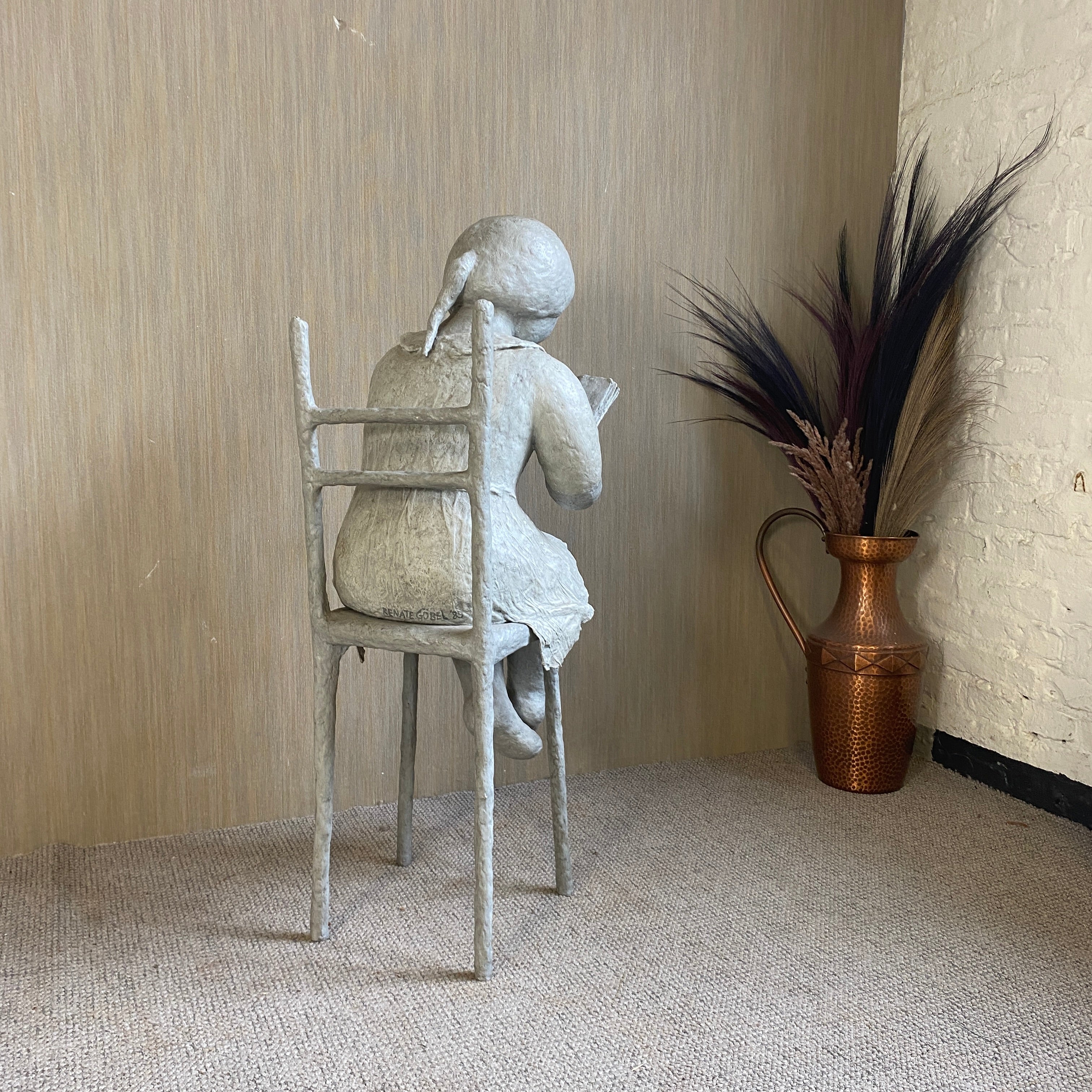+ Große Skulptur eines auf einem Stuhl sitzenden Mädchens, ein Buch lesend