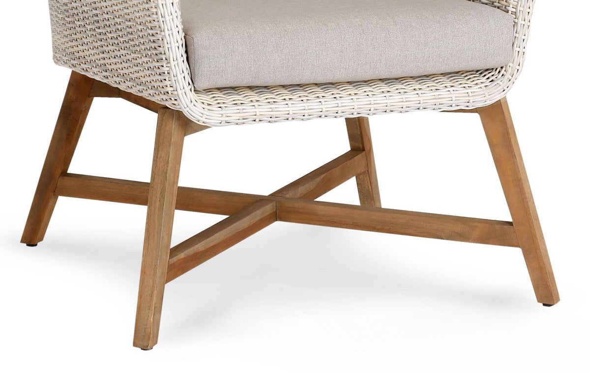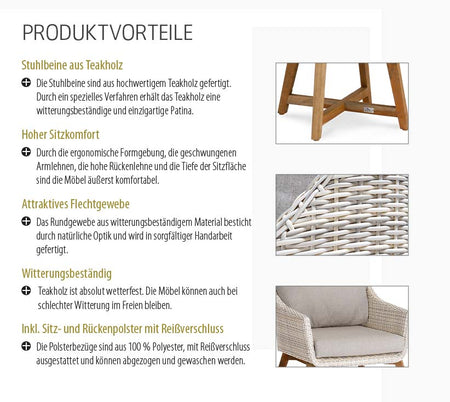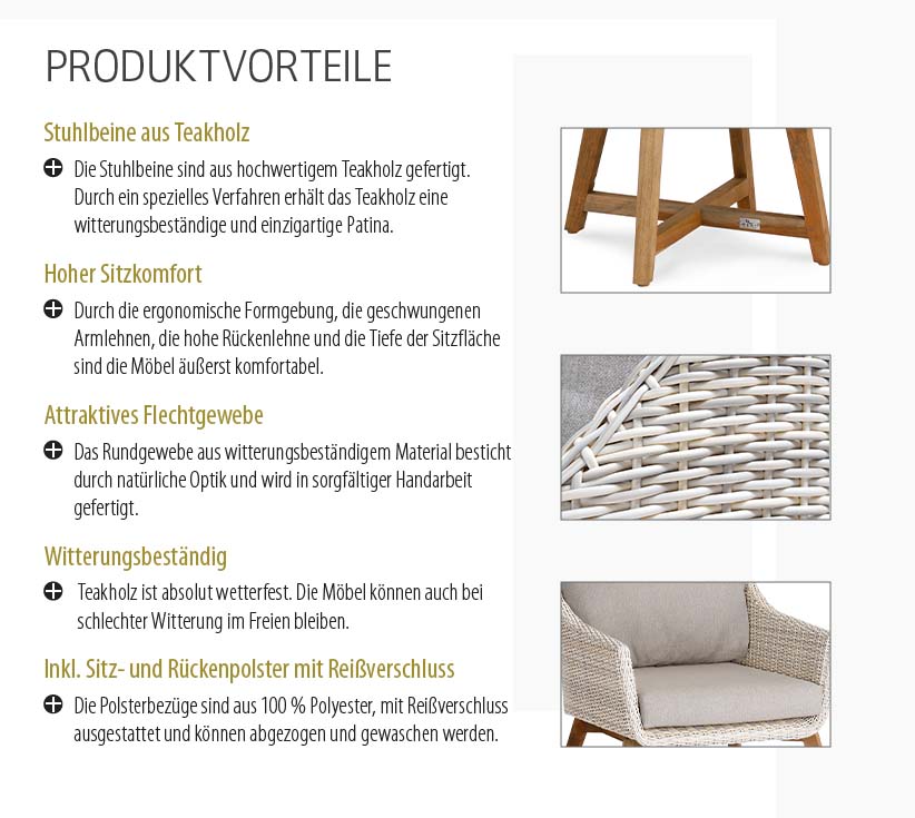 • • das moderne Flechtgewebe sowie das Teakholz sind absolut witterungsbeständig und U.V. beständig