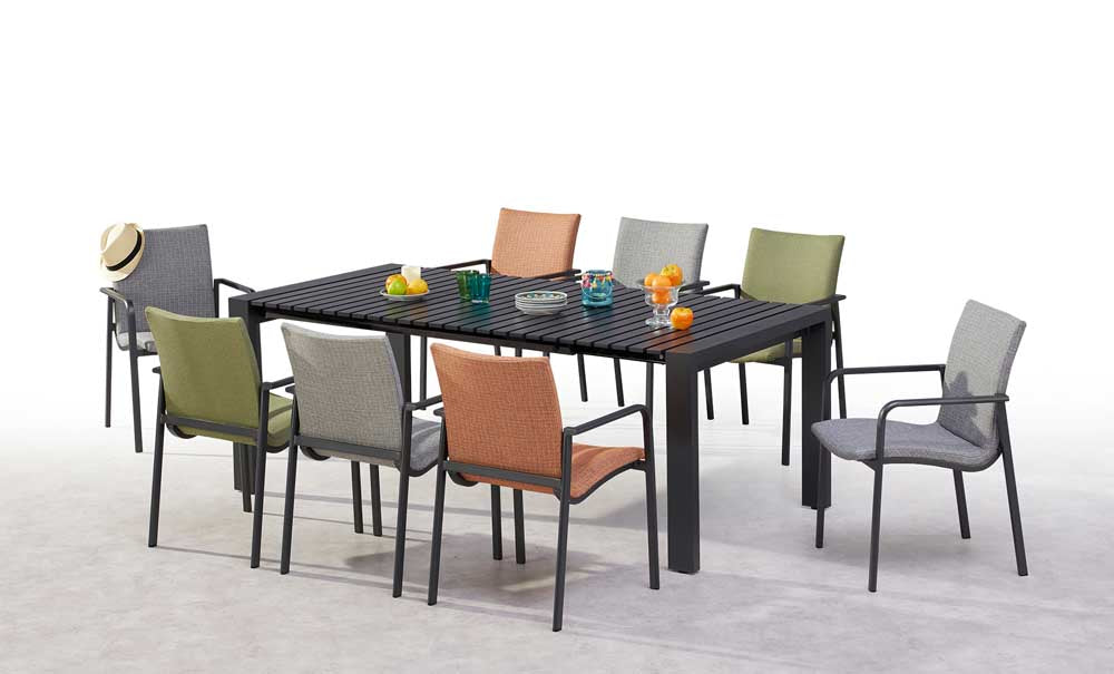 • • der Sessel ist absolut wetterfest und platzsparend stapelbar