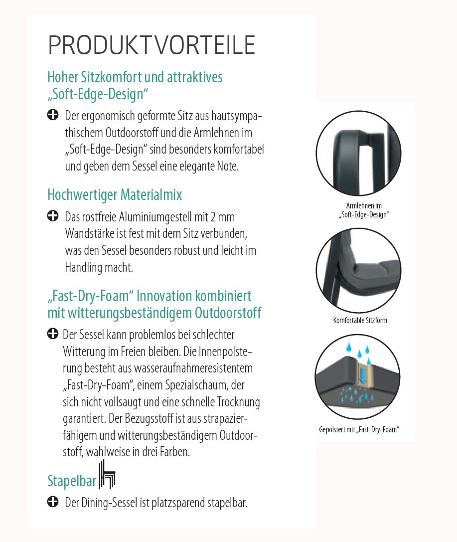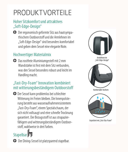 • • der Sessel ist absolut wetterfest und platzsparend stapelbar
