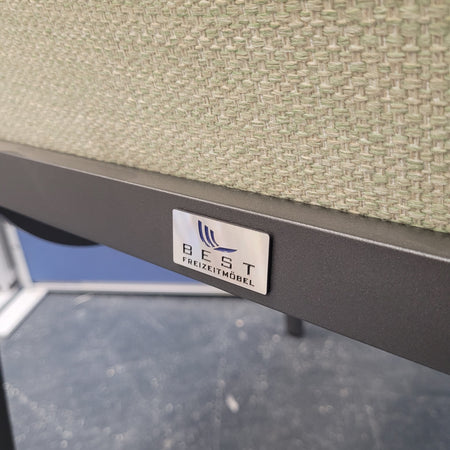 • • der Bezugsstoff ist aus strapazierfähigem und witterungsbeständigem Outdoorstoff