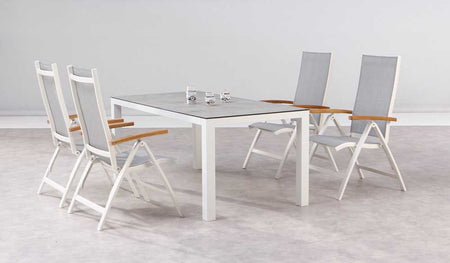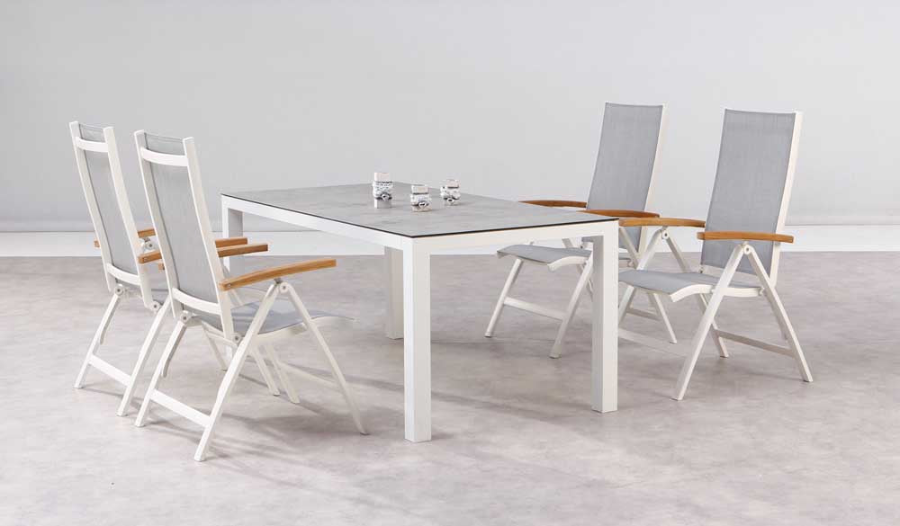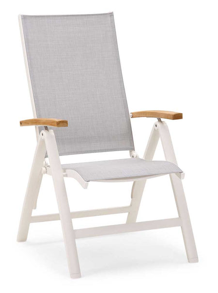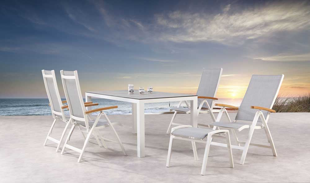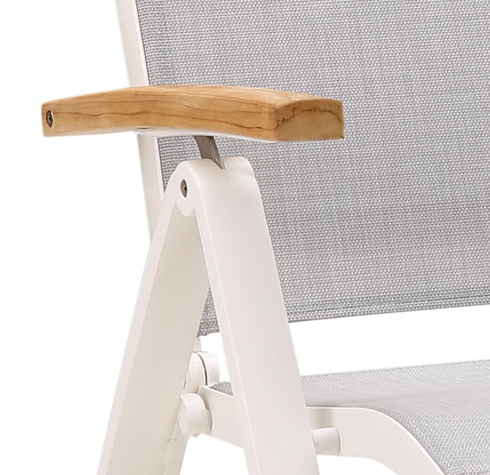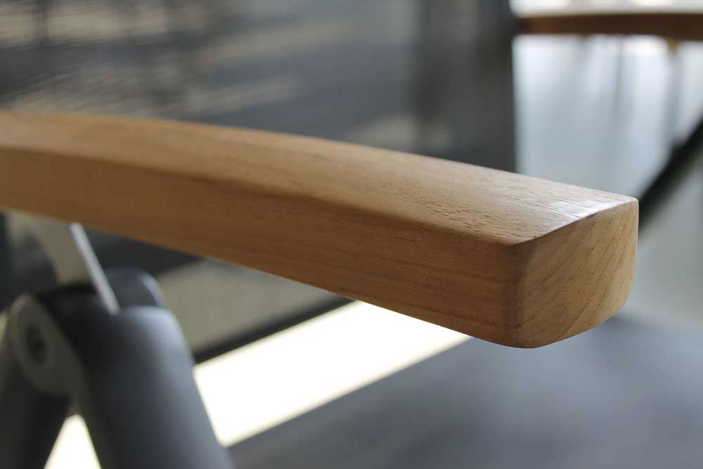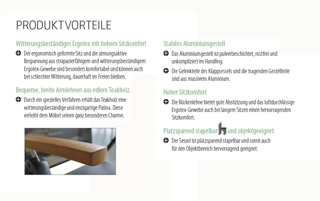 • • bequeme, breite Armlehnen aus edlem, witterungsbeständigem Teak-Holz