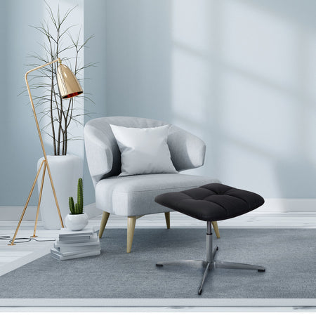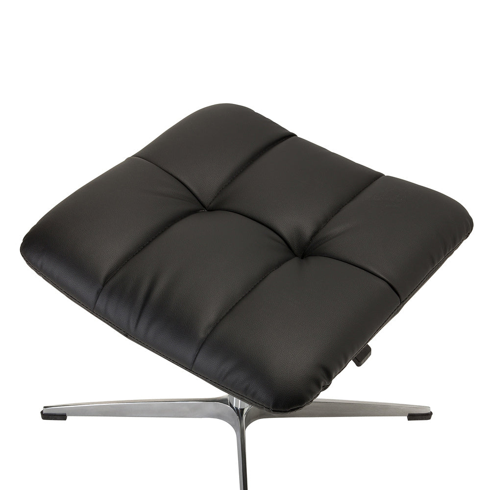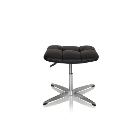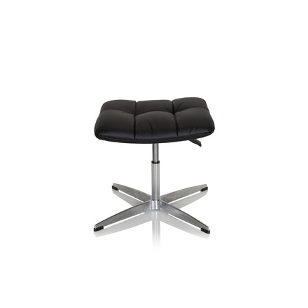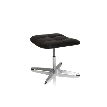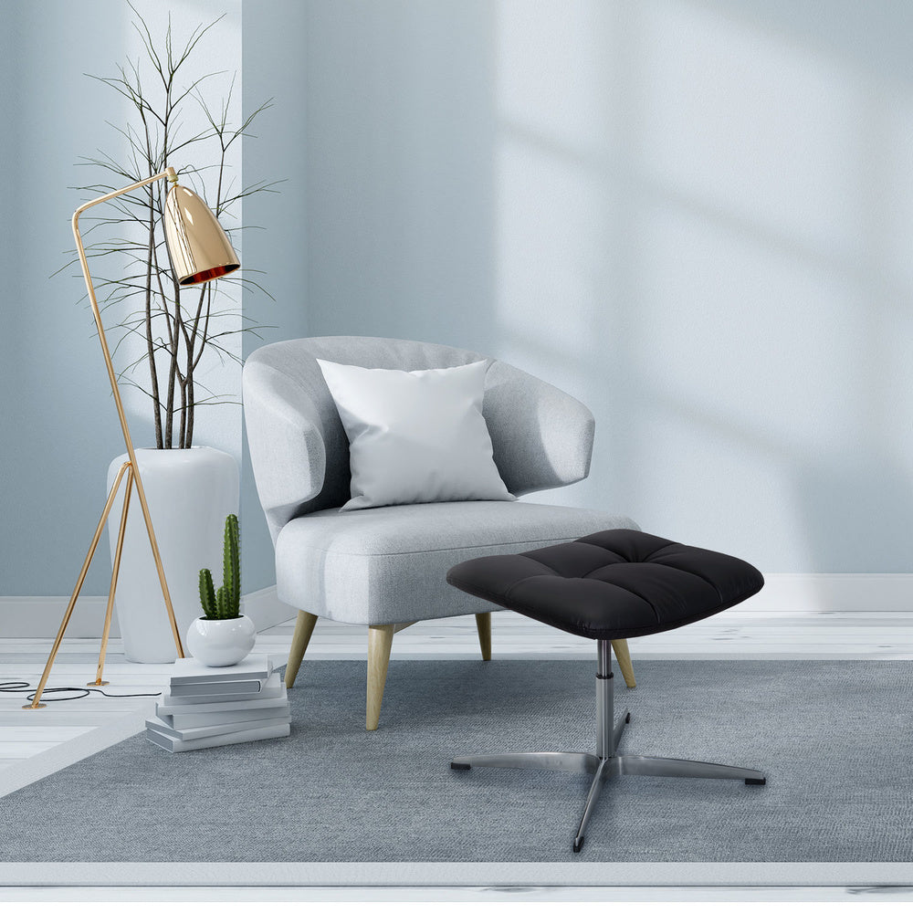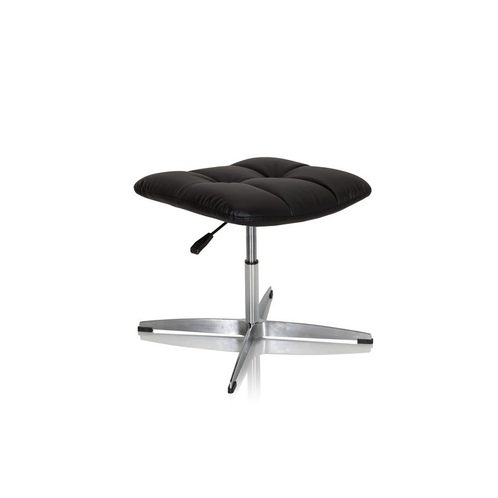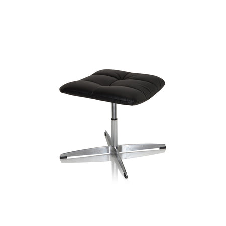 • • Das Designer-Fußkreuz aus Edelstahl mit bodenschonenden Kunststoffgleitern sorgt für einen sicheren Stand