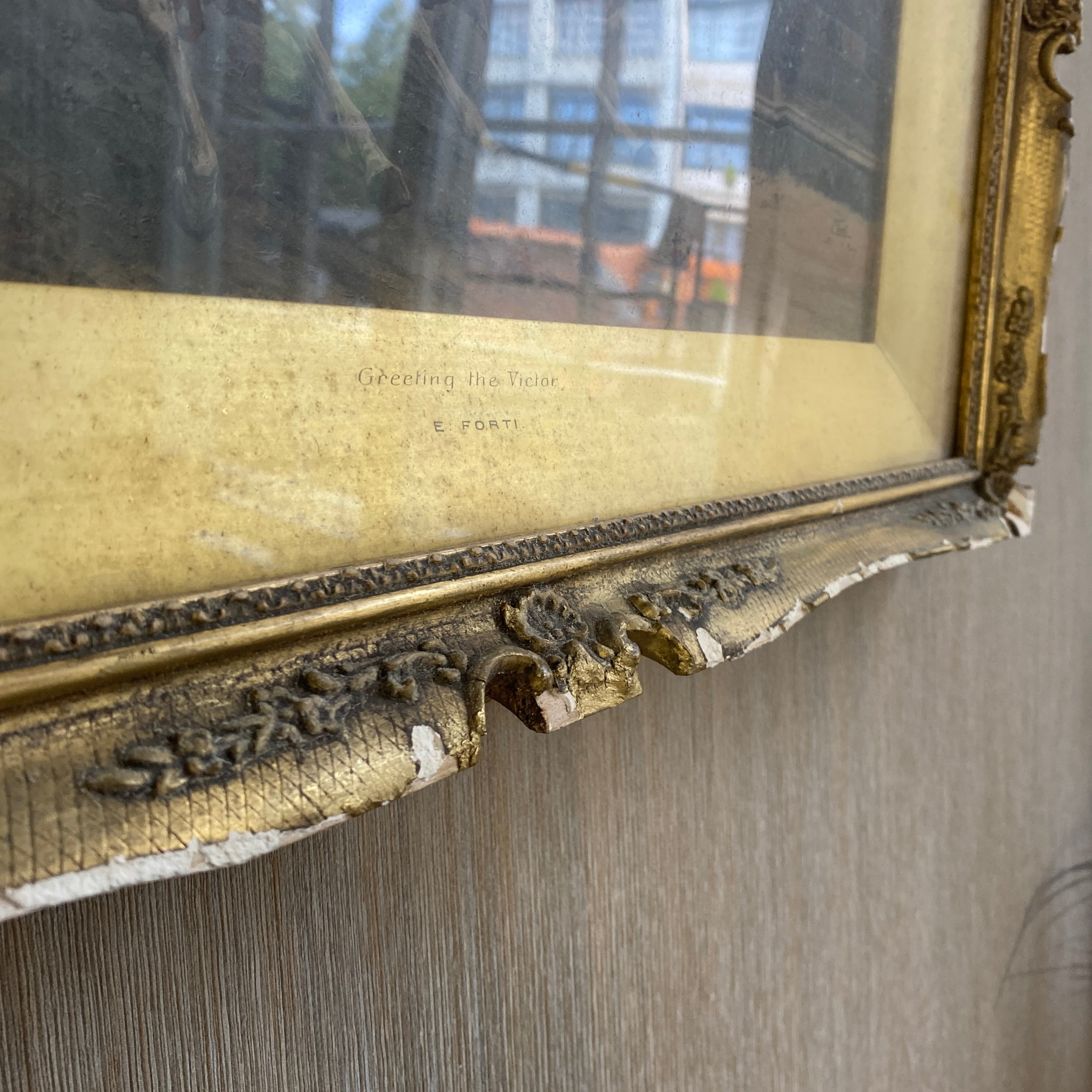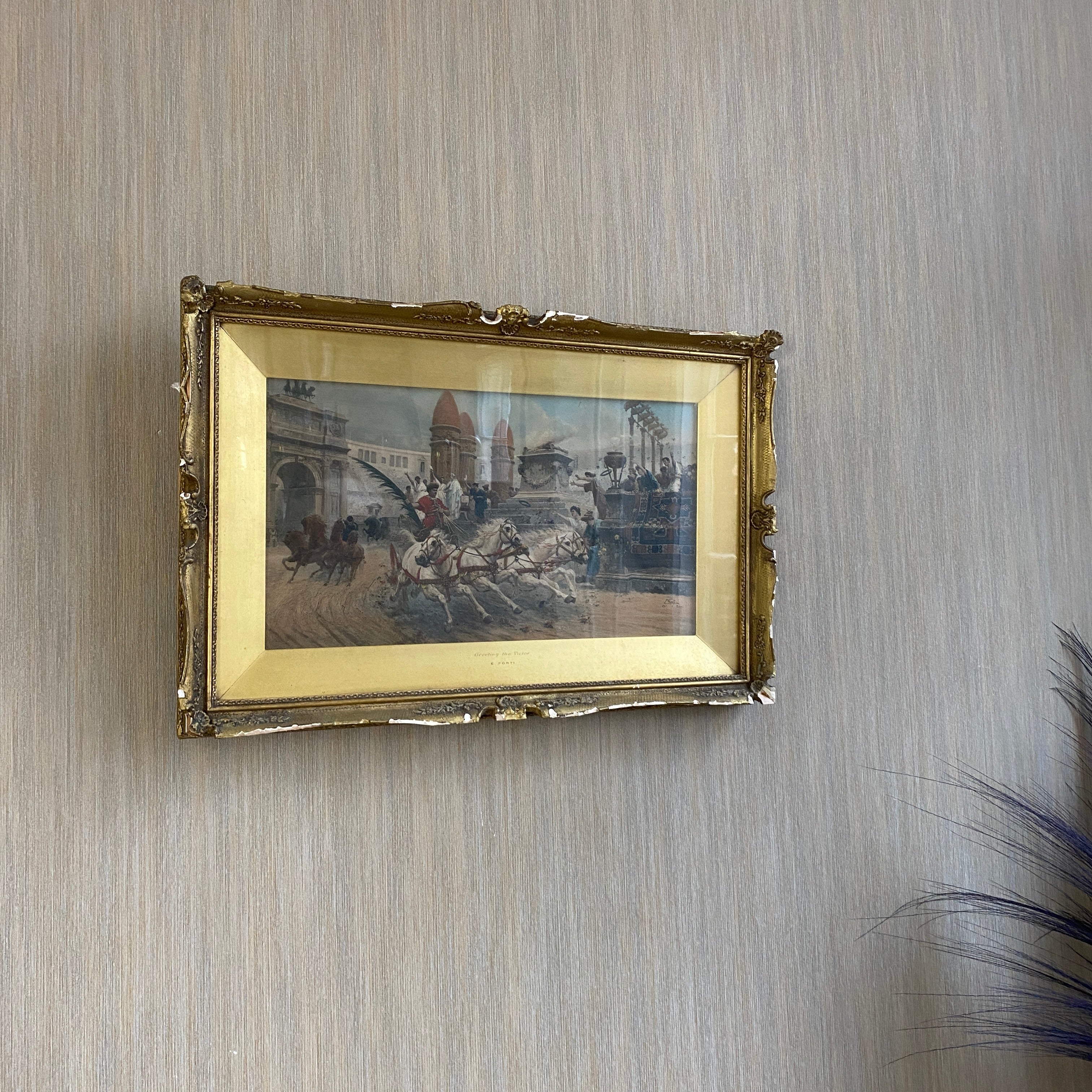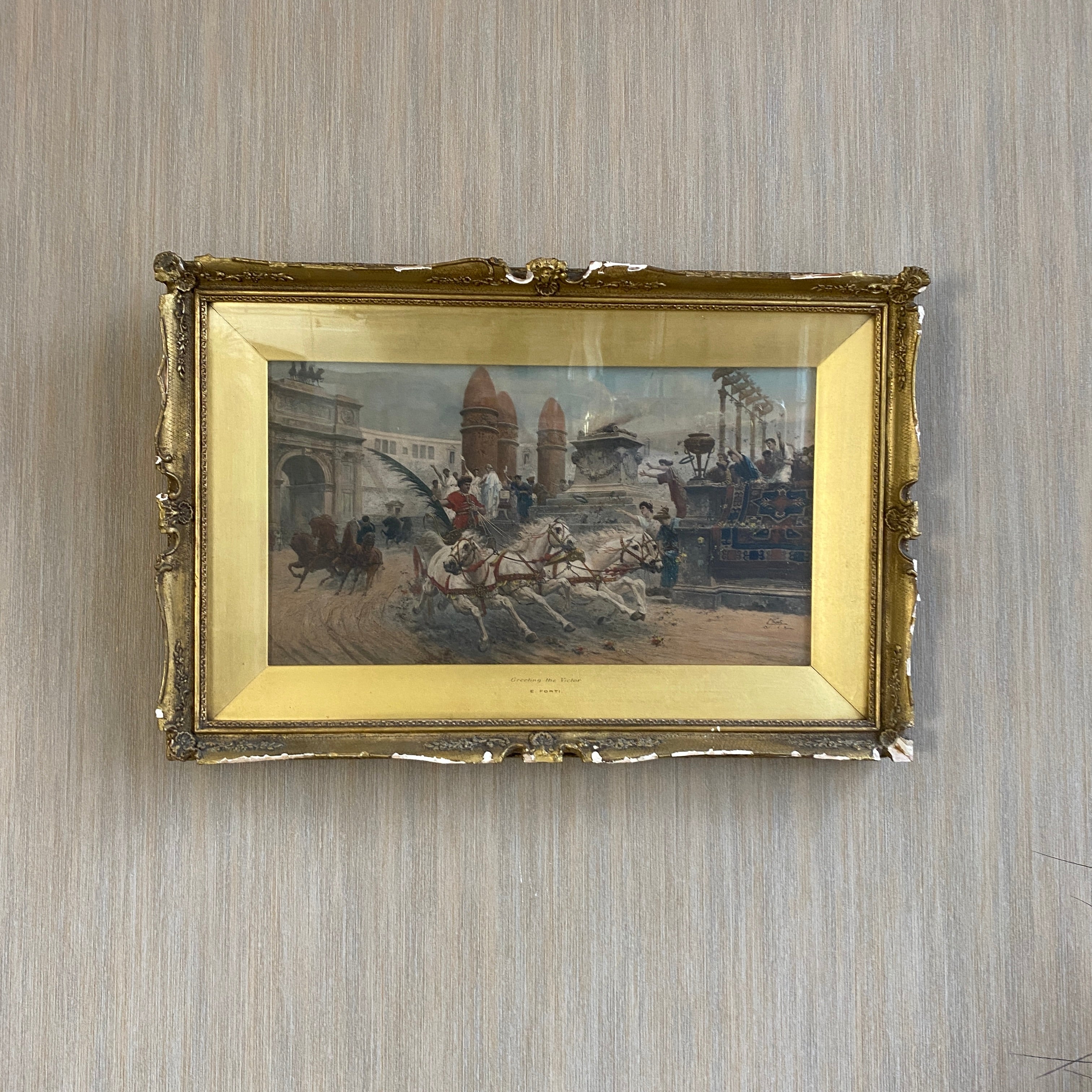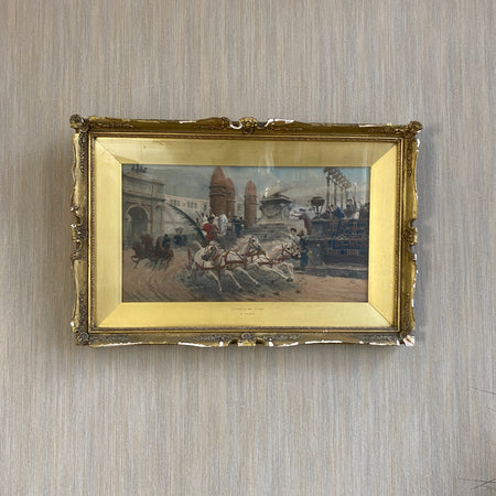 + kolorierte Druckgraphik nach Ettore Forti mit Wagenrennen, im Druck sign.
