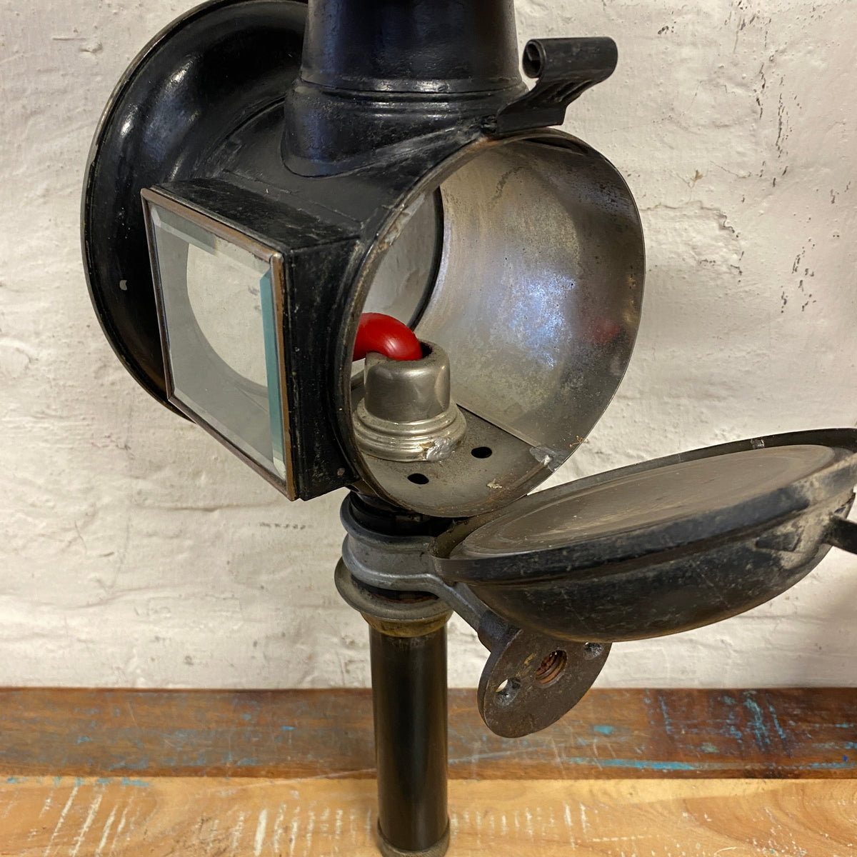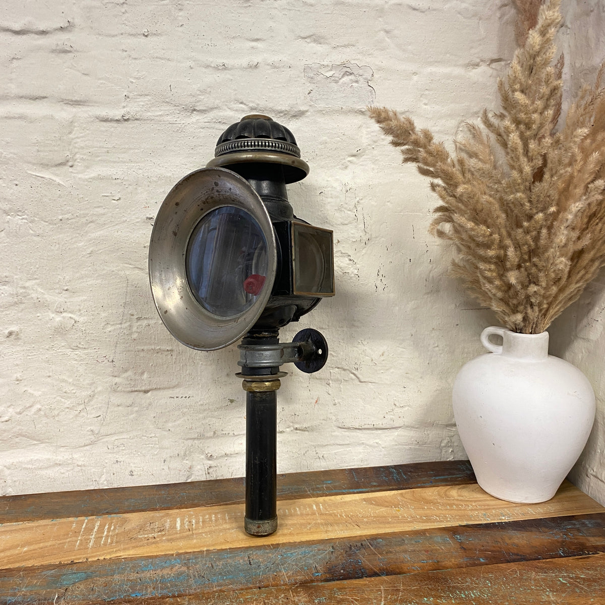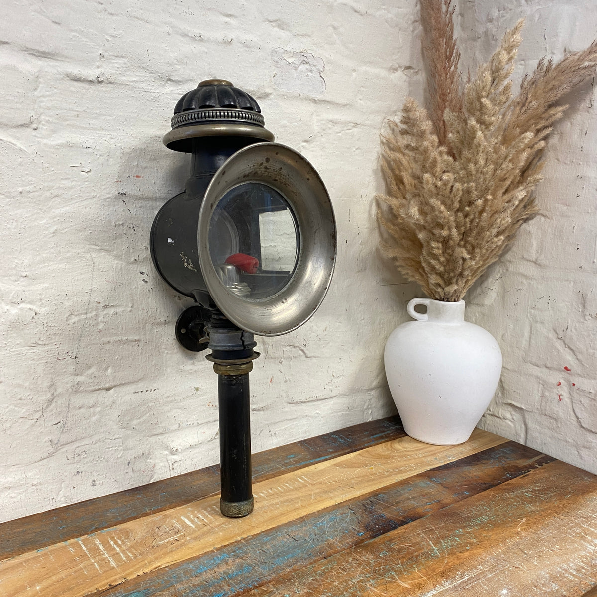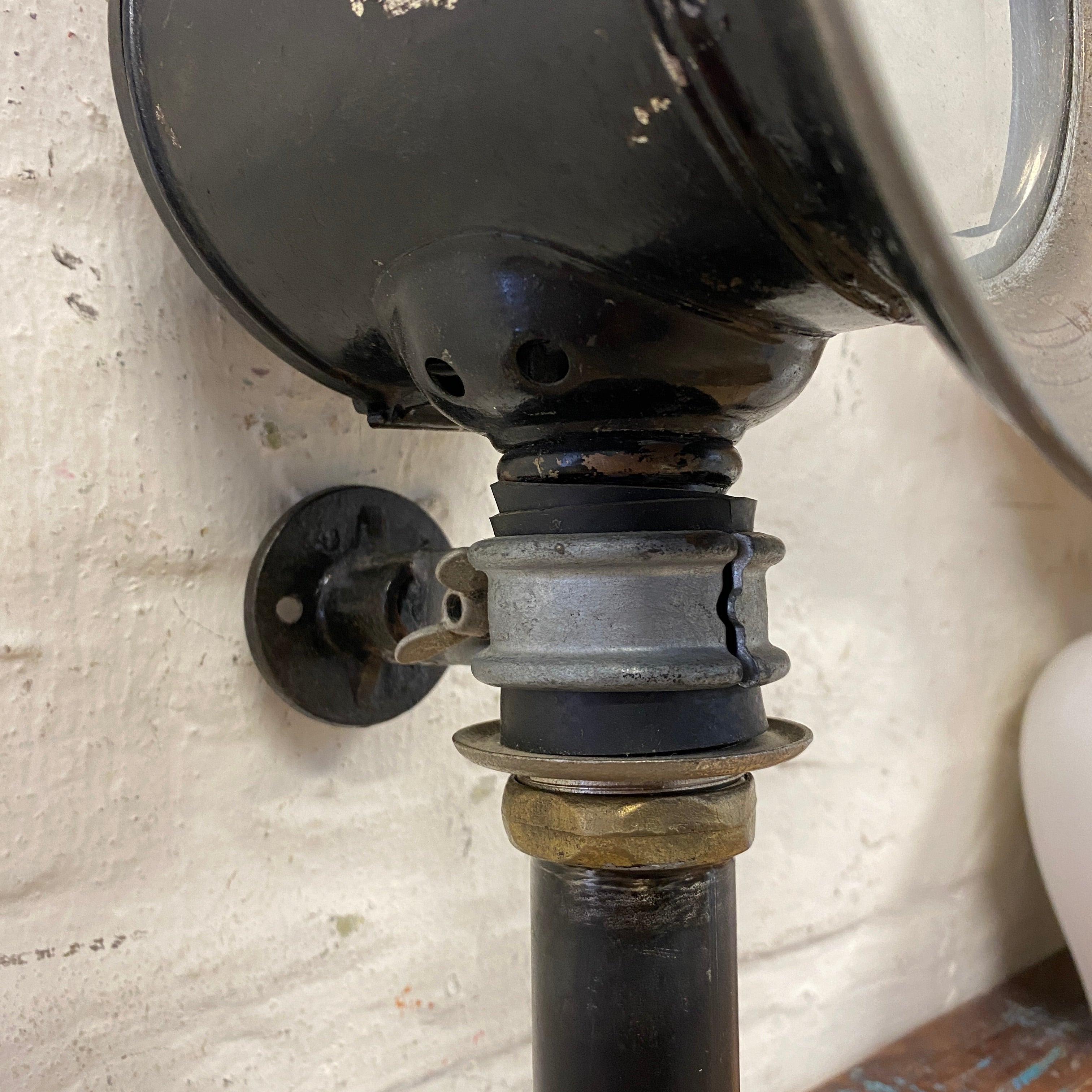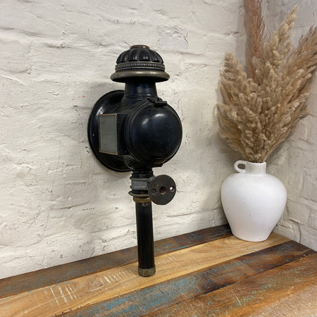 Schwarz gelacktes Metall. Einflammig für Kerzenbetrieb. Stärkere Gebrauchsspuren. Um 1900. L. 50 cm.