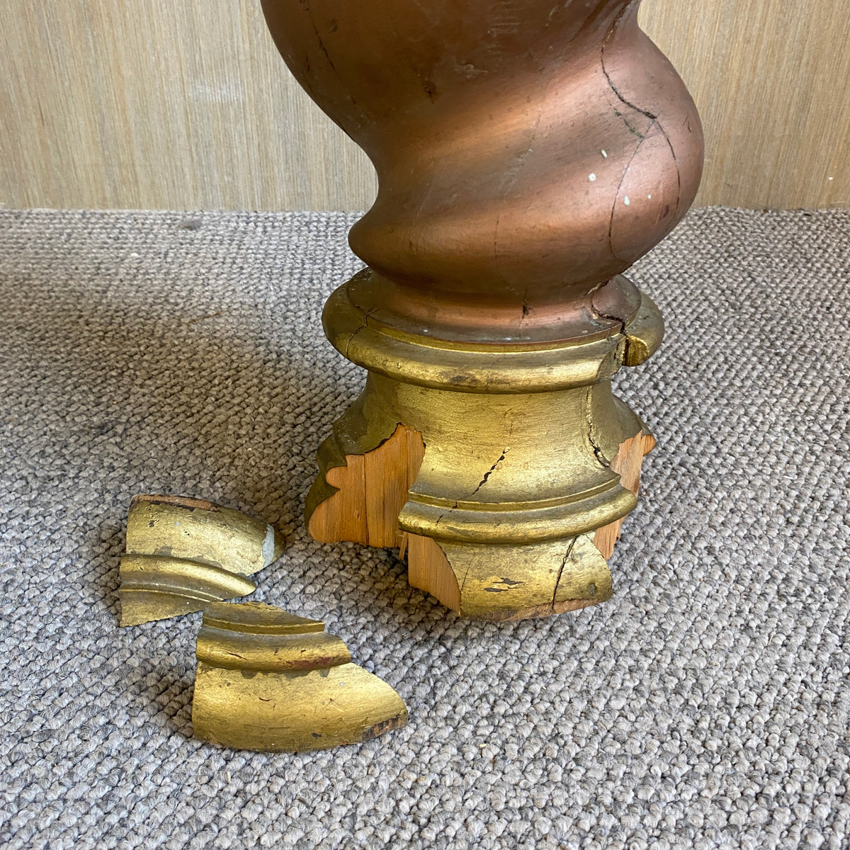 + Holz, gedrechselt, spätere Gold- und Kupferbronzefassung