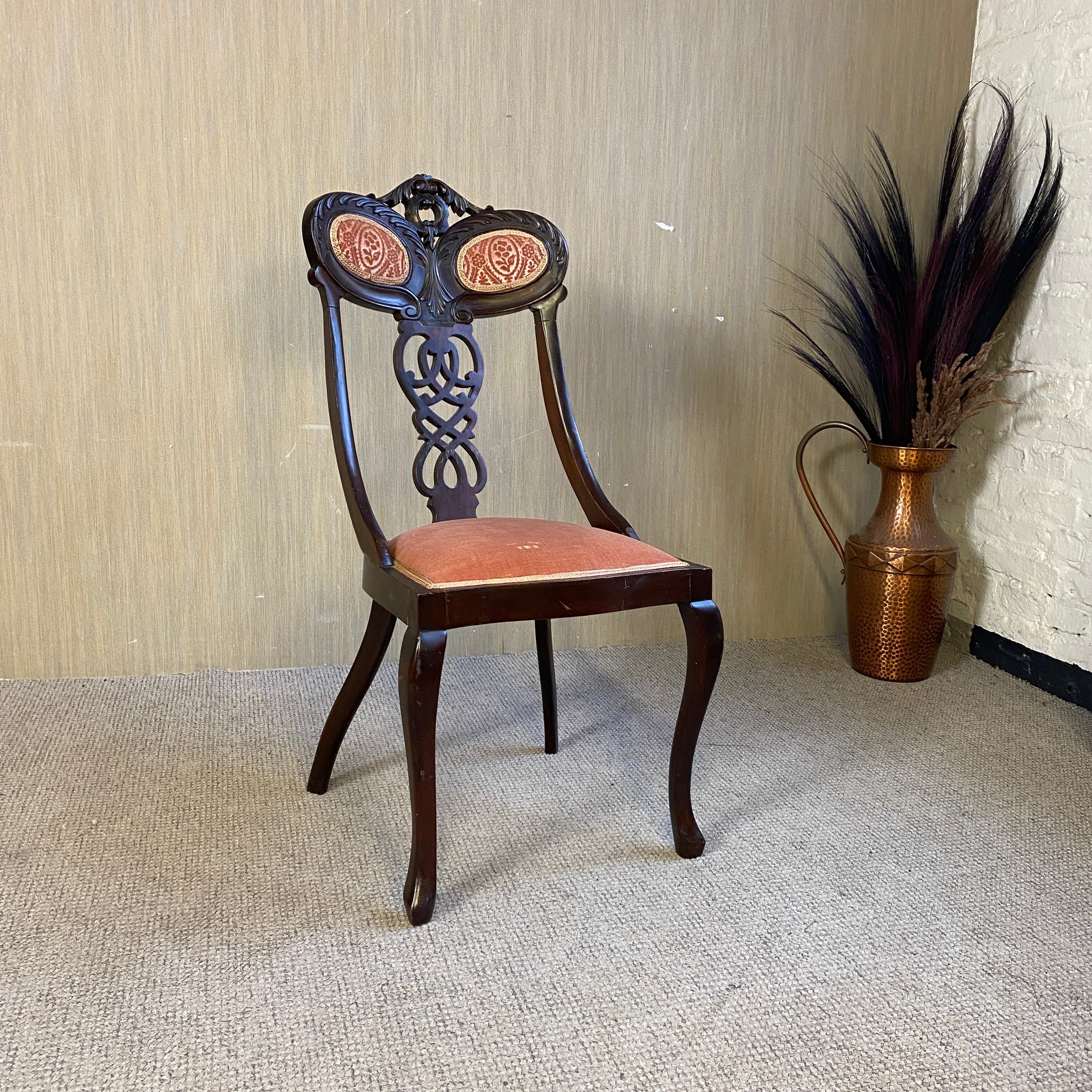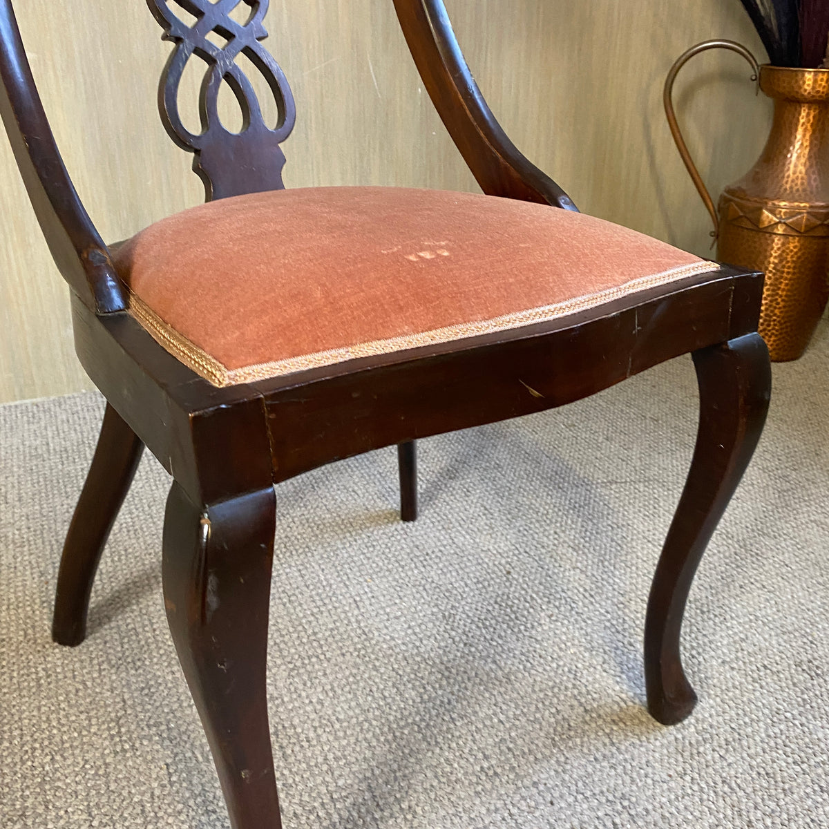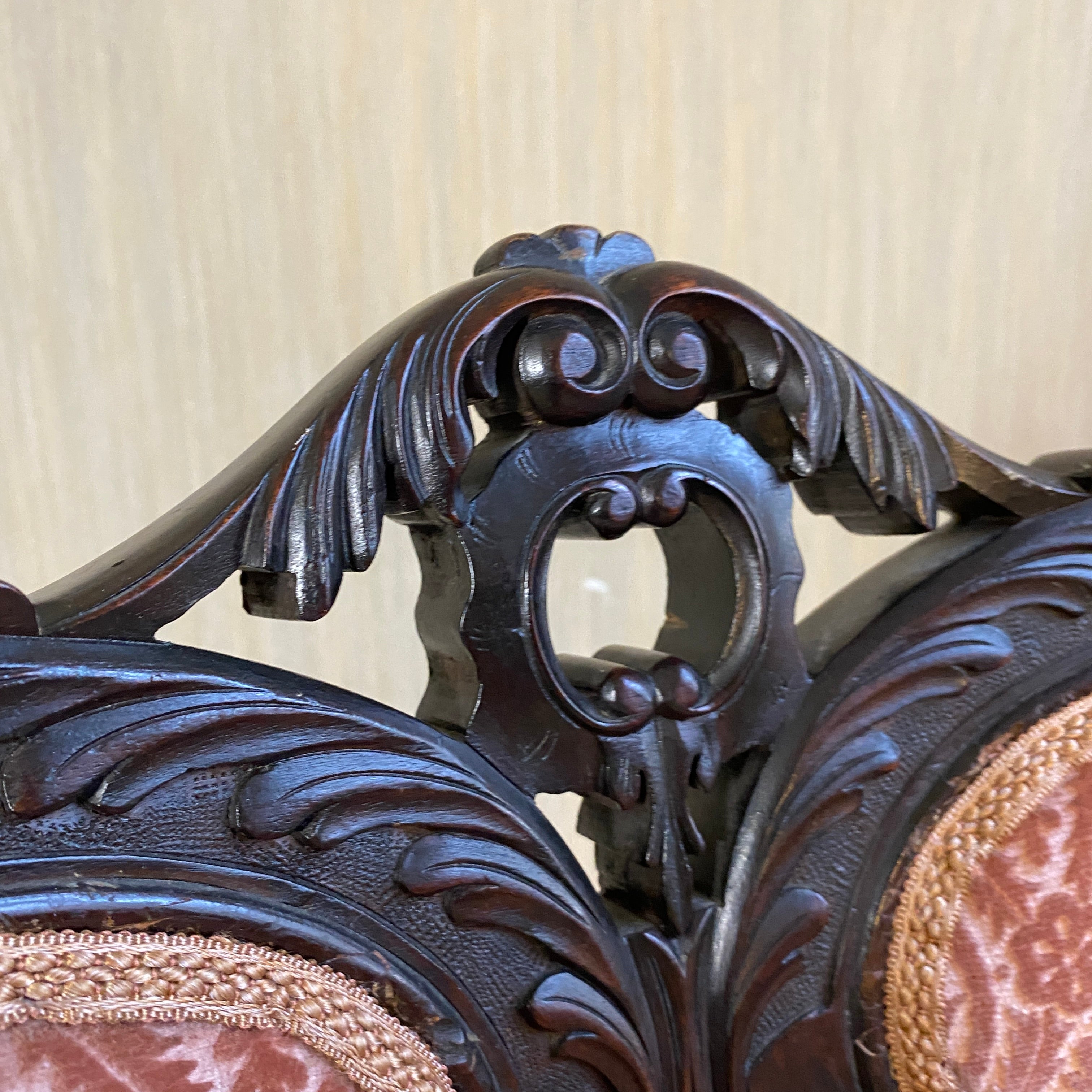 + Geschnitzte Mahagonigestelle, dunkel gebeizt