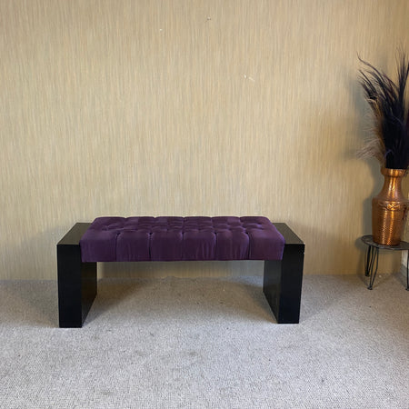 + Schwarz lackierte Holzgestell, purpur gepolsterte Sitzfläche mit Steppung