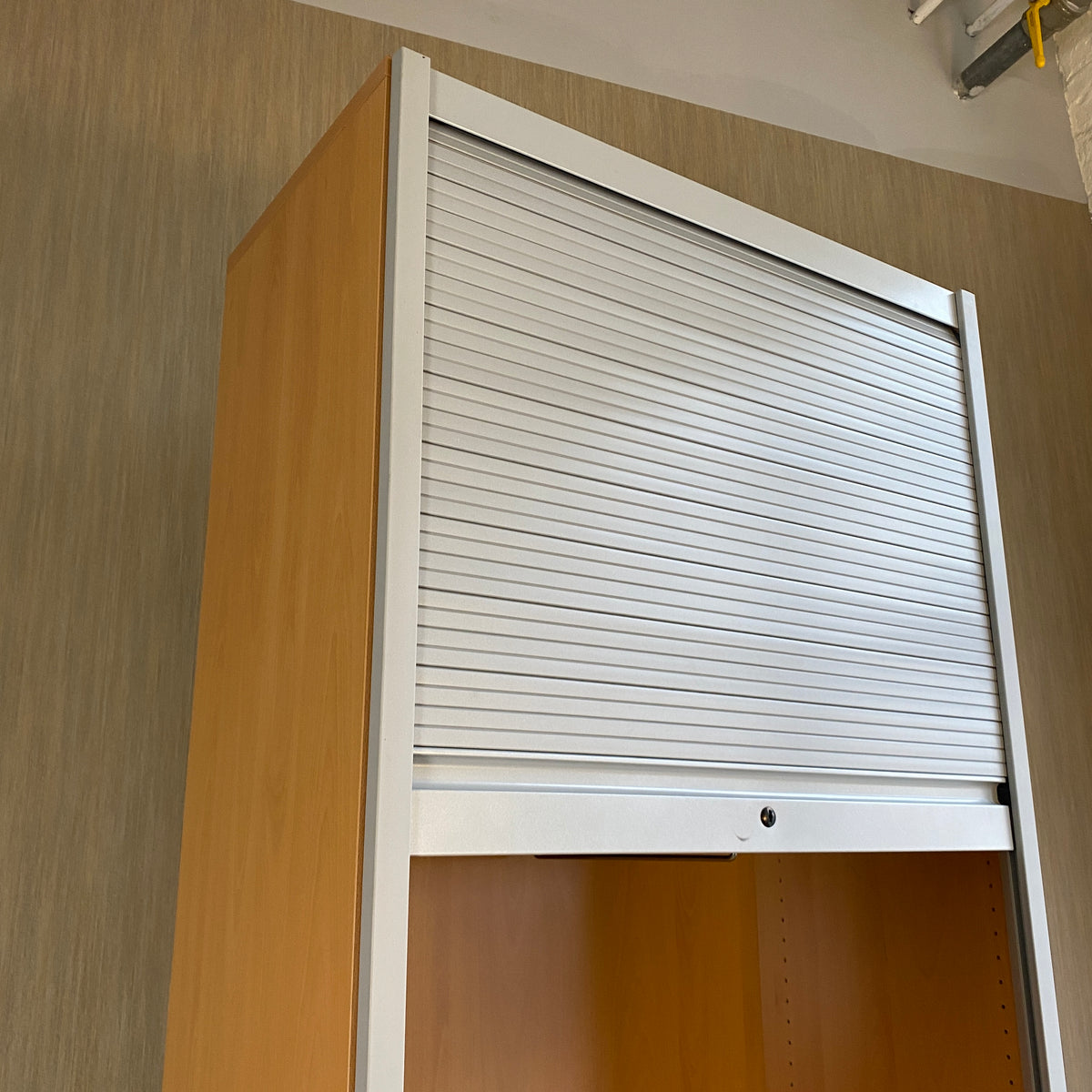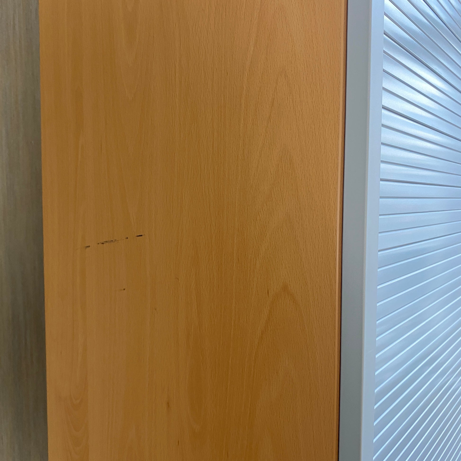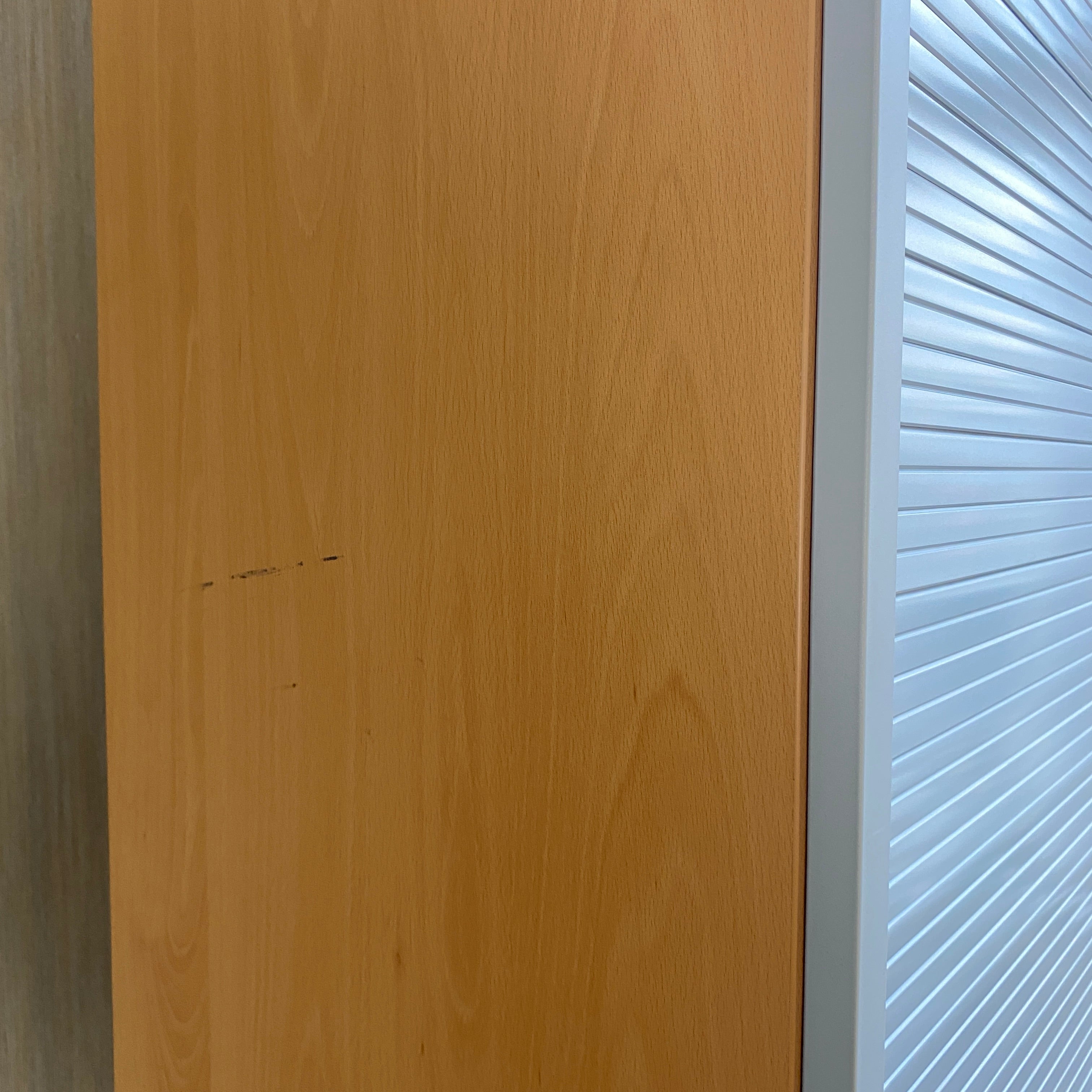 + Holzkorpus mit Lamellentür aus Kunststoff in Silber