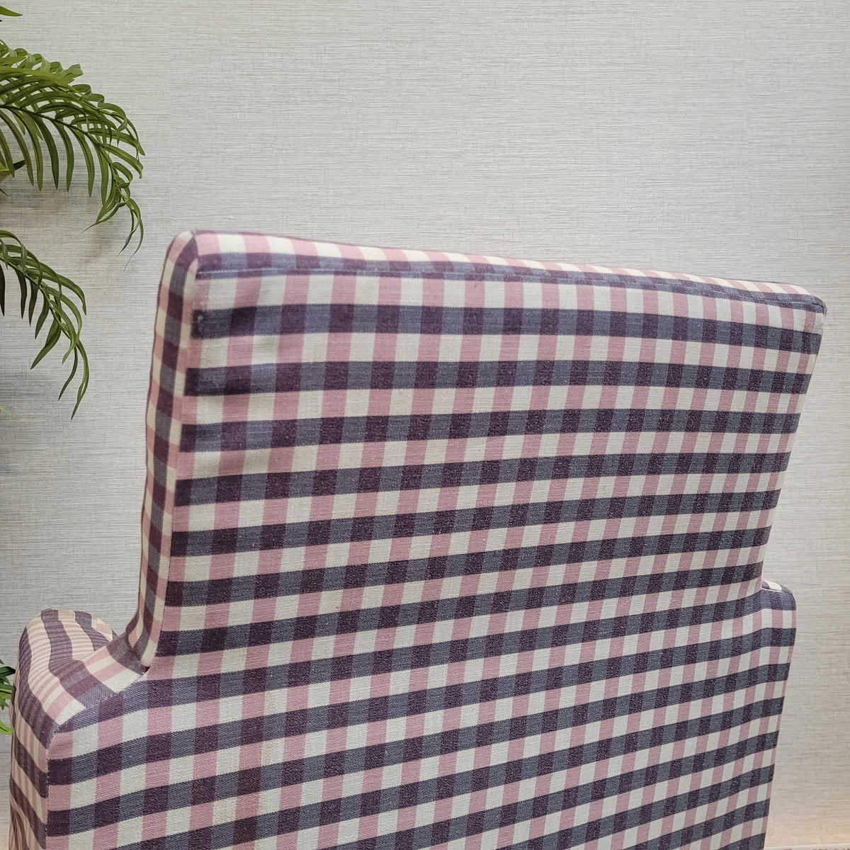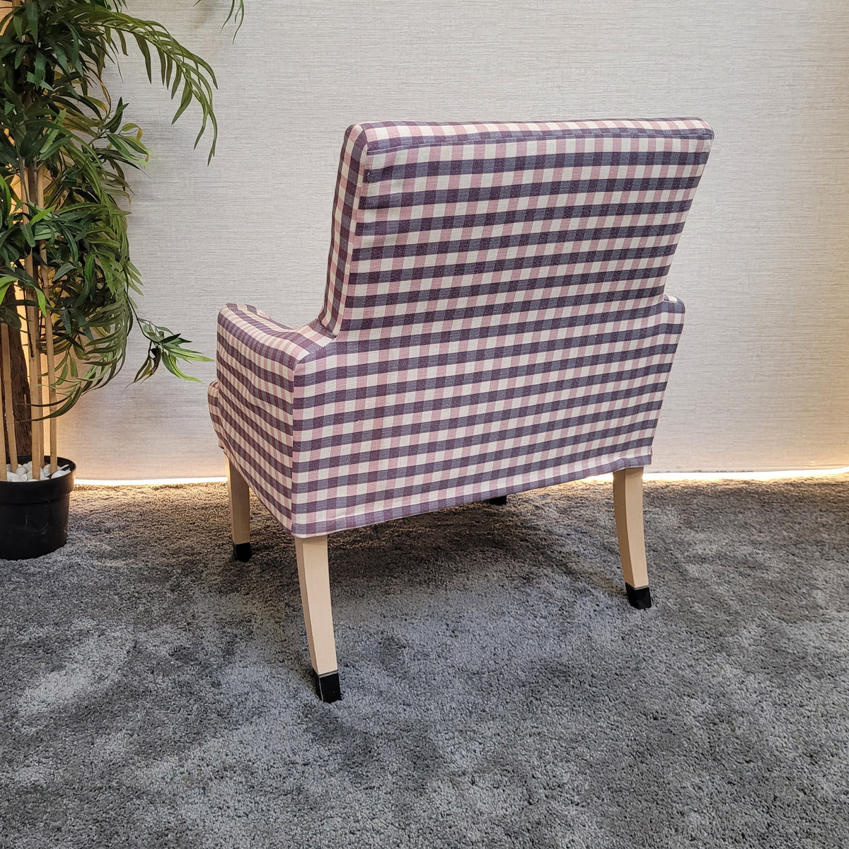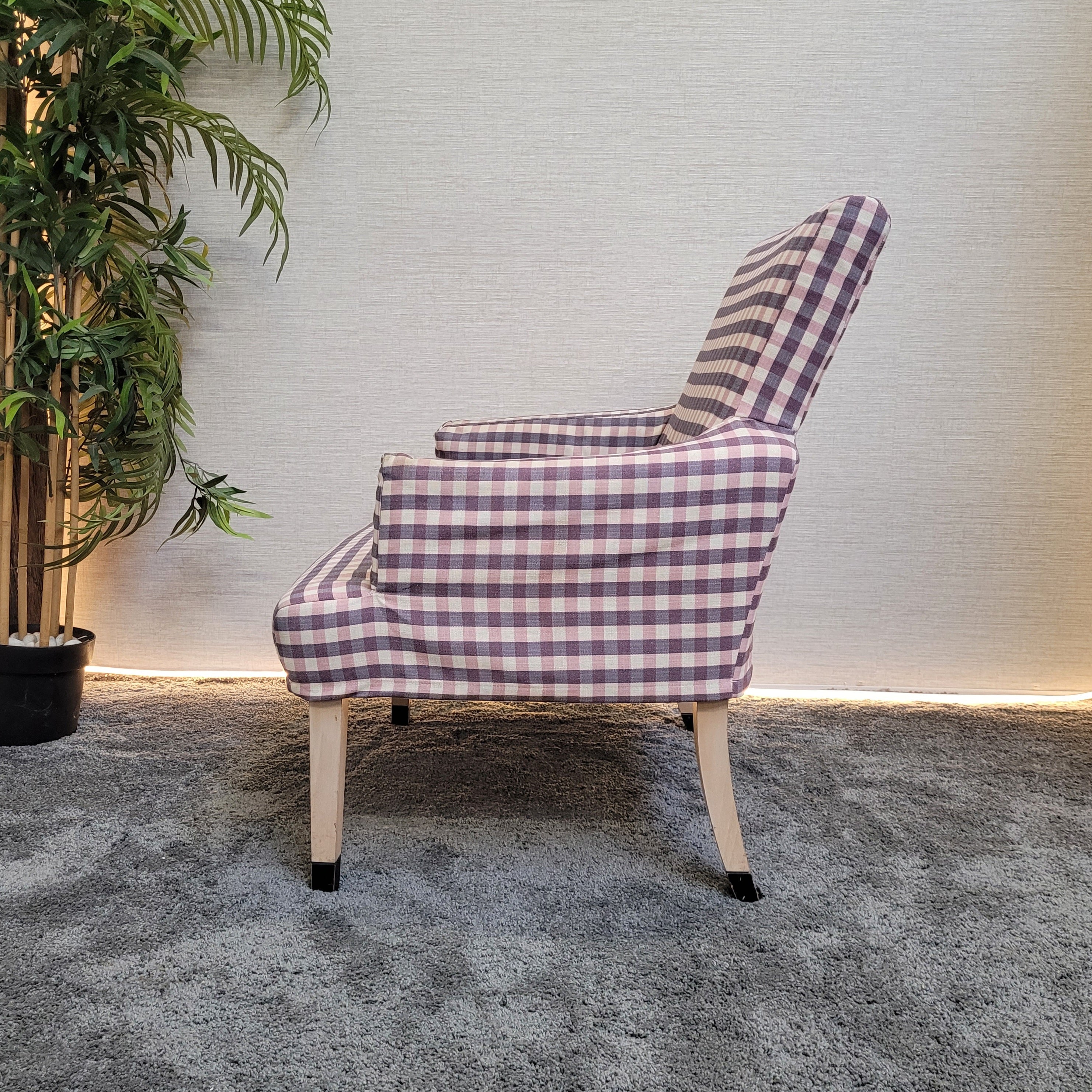 + Stilvoller Retro-Sessel mit auffälligem kariertem Stoffbezug