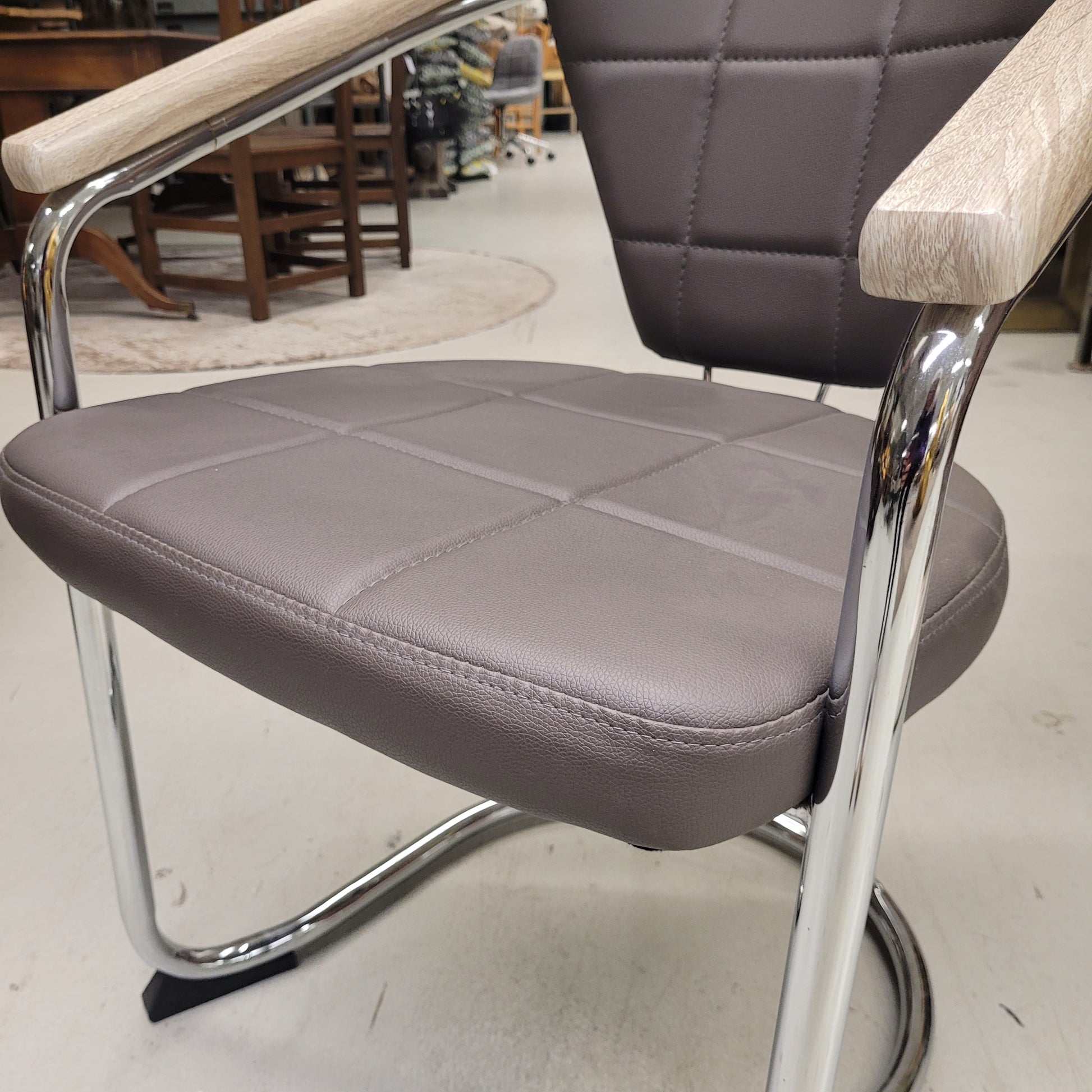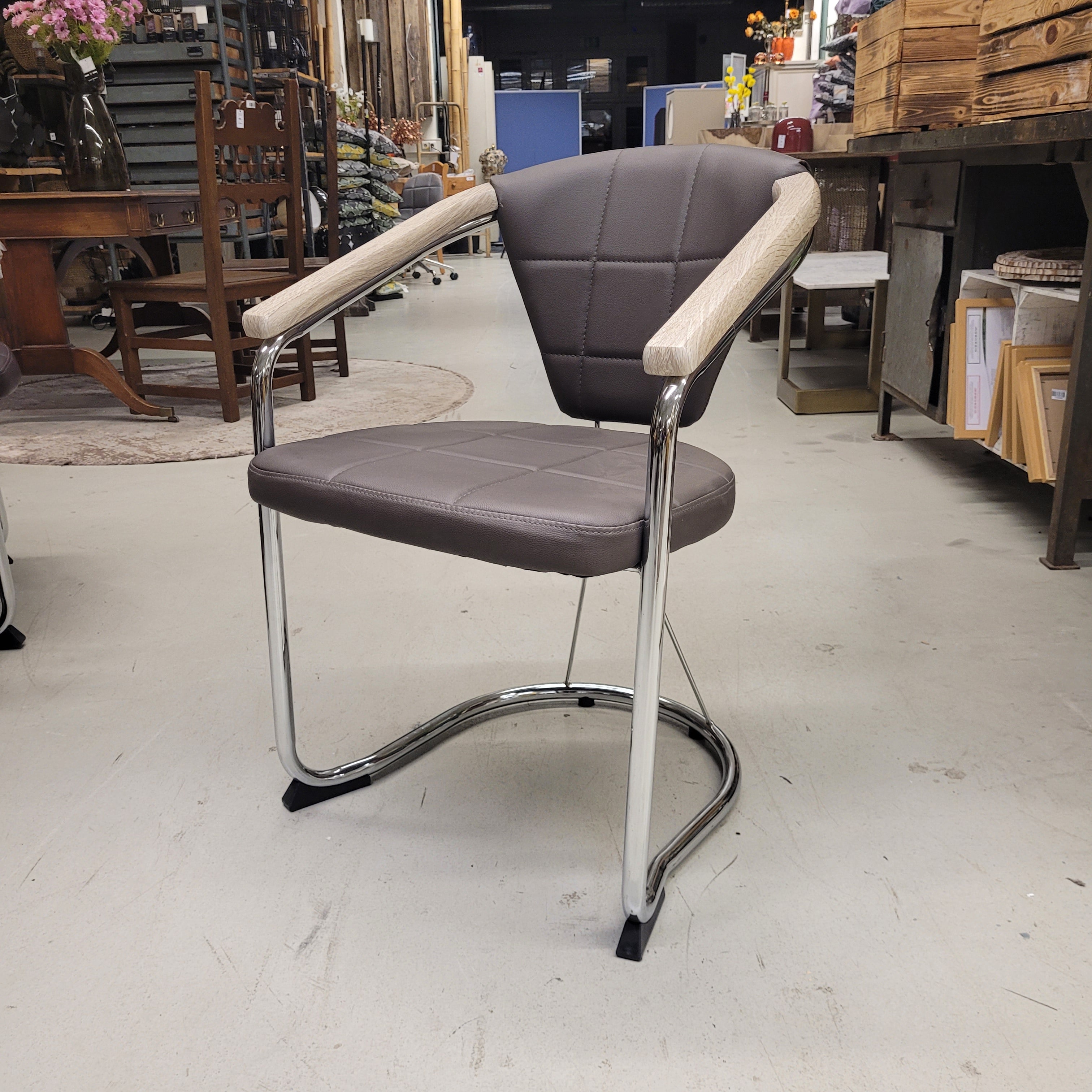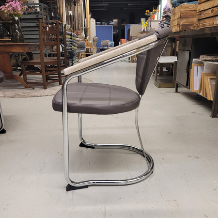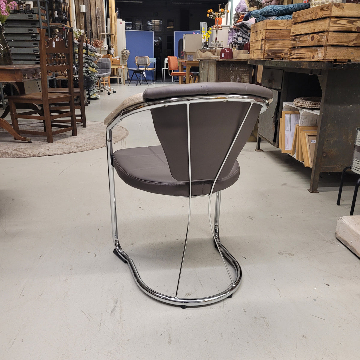 Armlehnstuhl braun hell Leder Chrom Stuhl