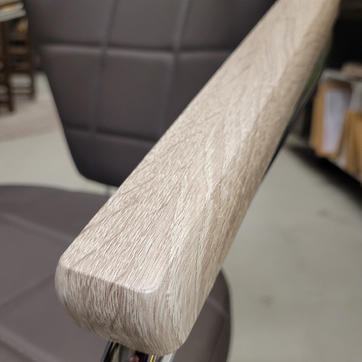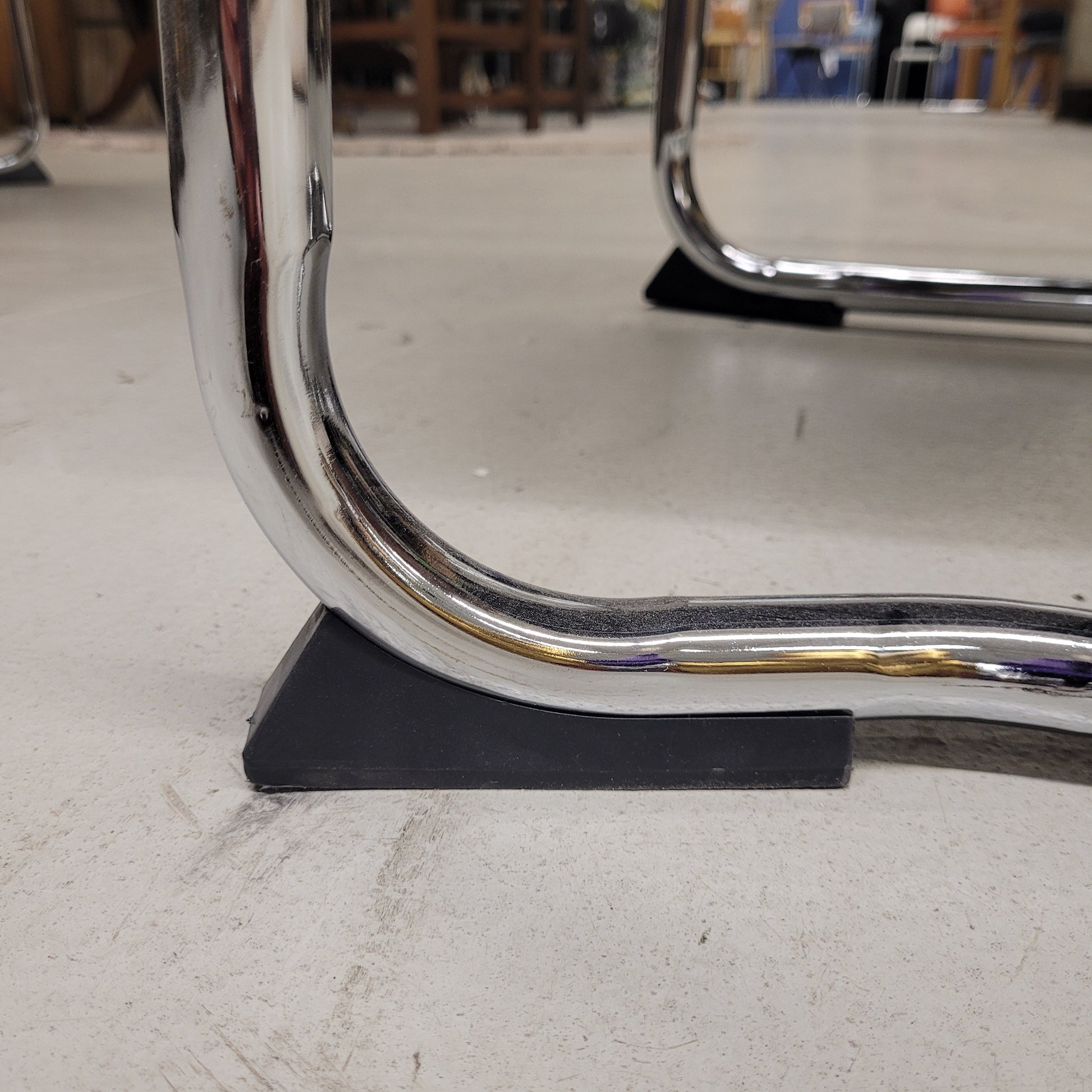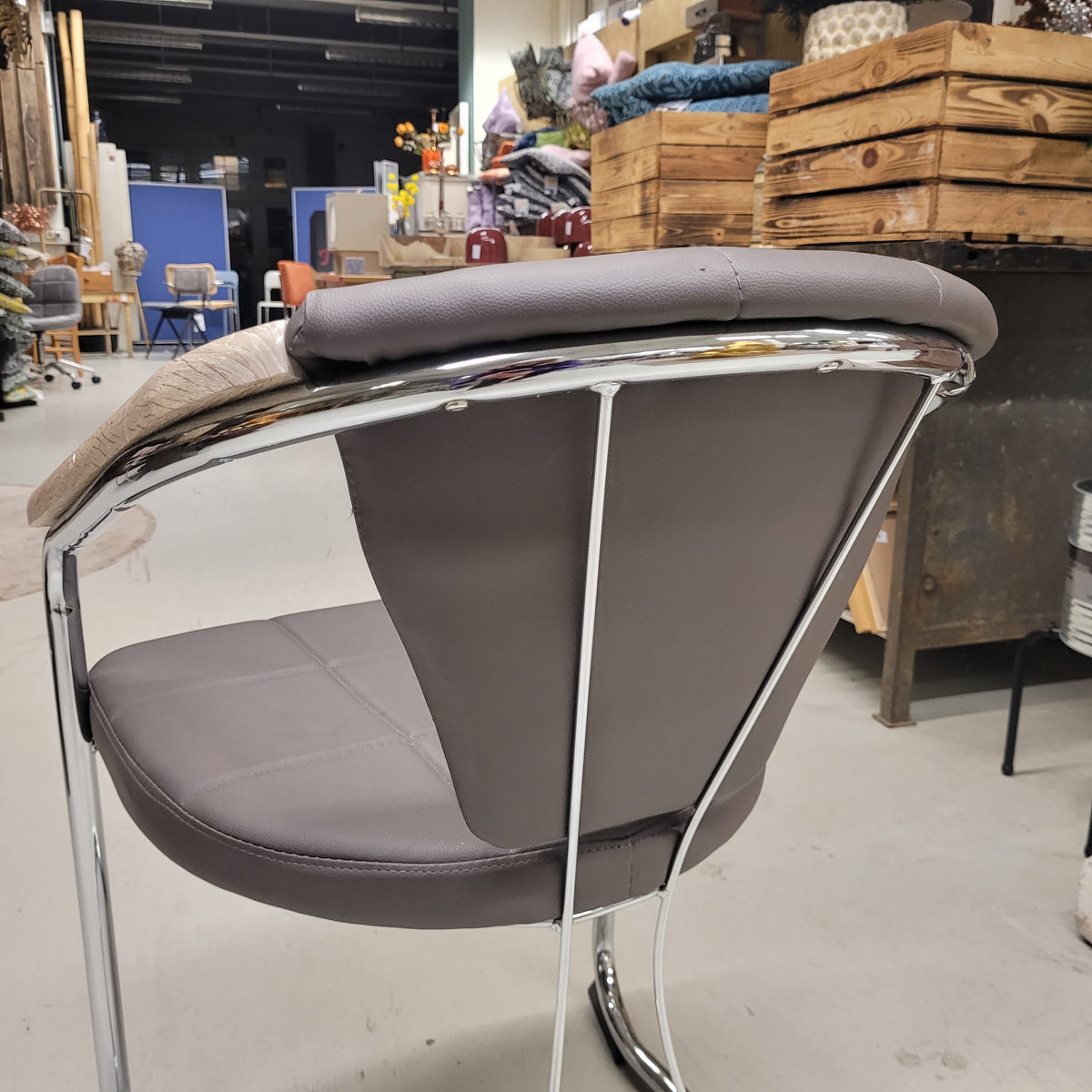 Armlehnstuhl braun hell Leder Chrom Stuhl