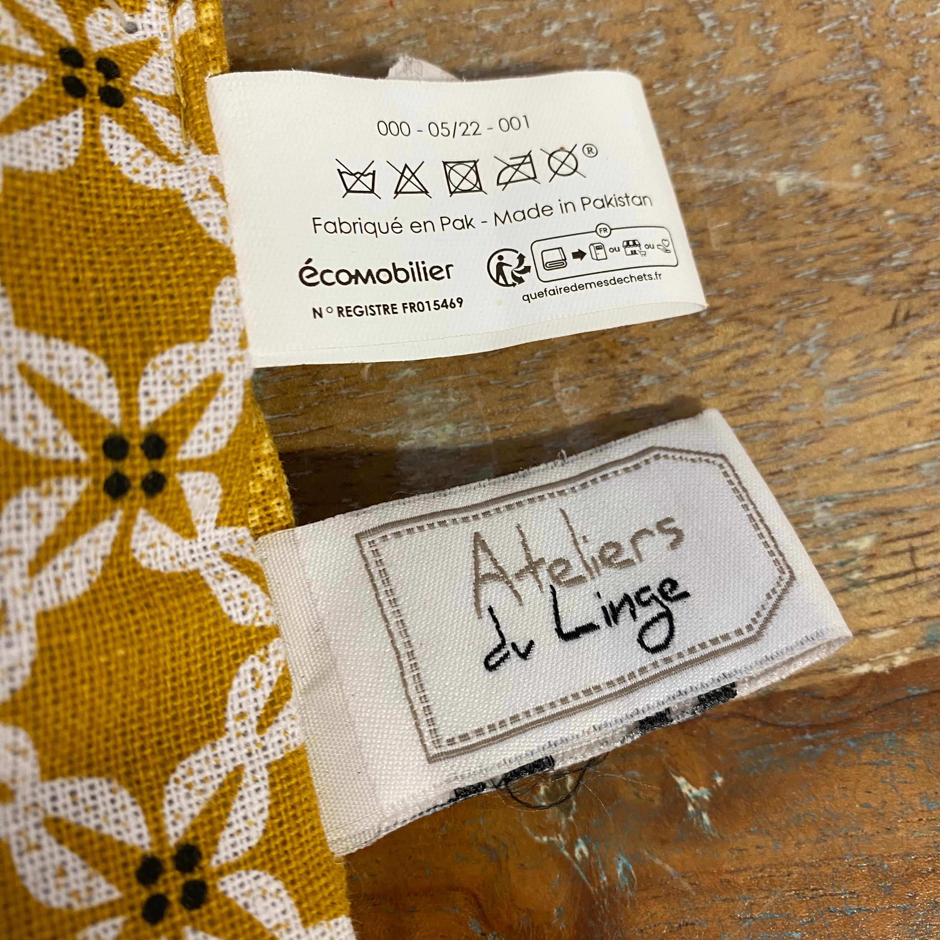 Ateliers du Linge Stuhlkissen gelb gemustert 40x40 Neuware Kissen