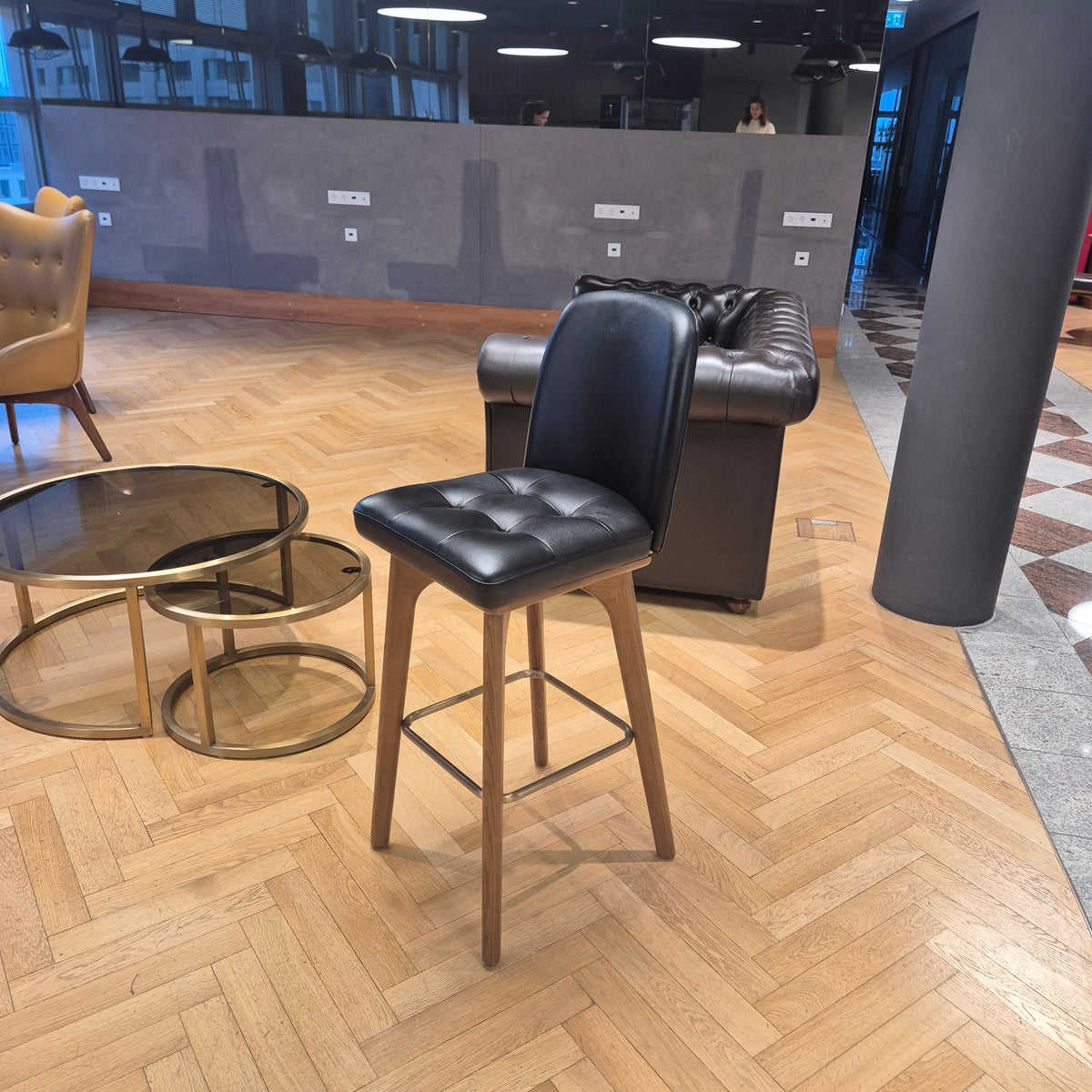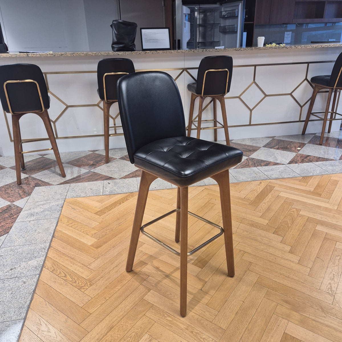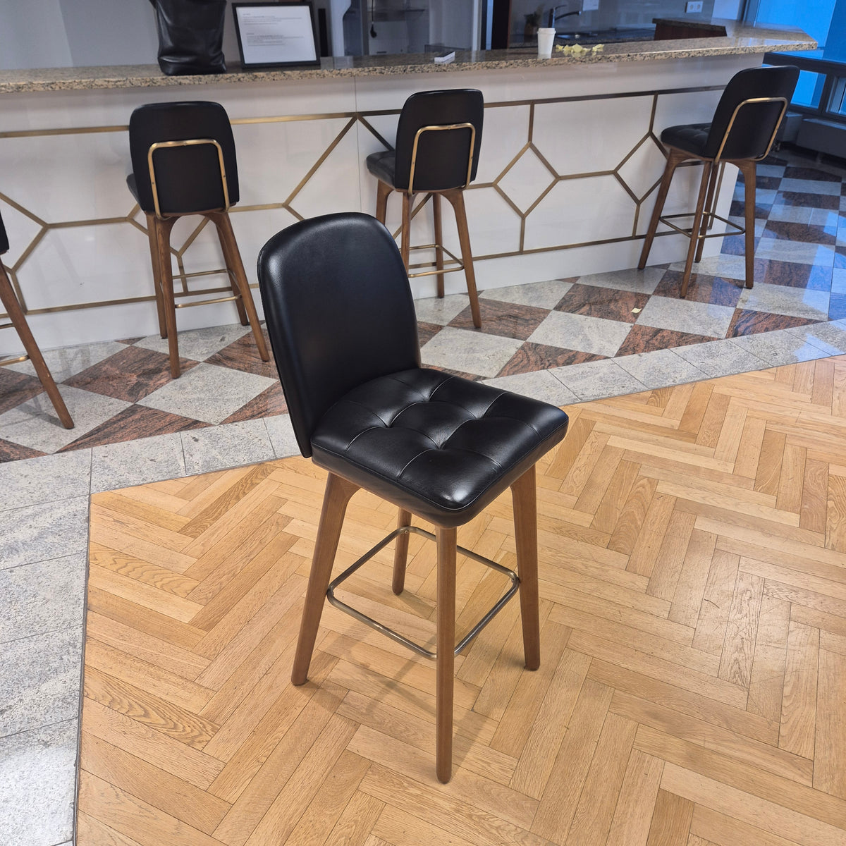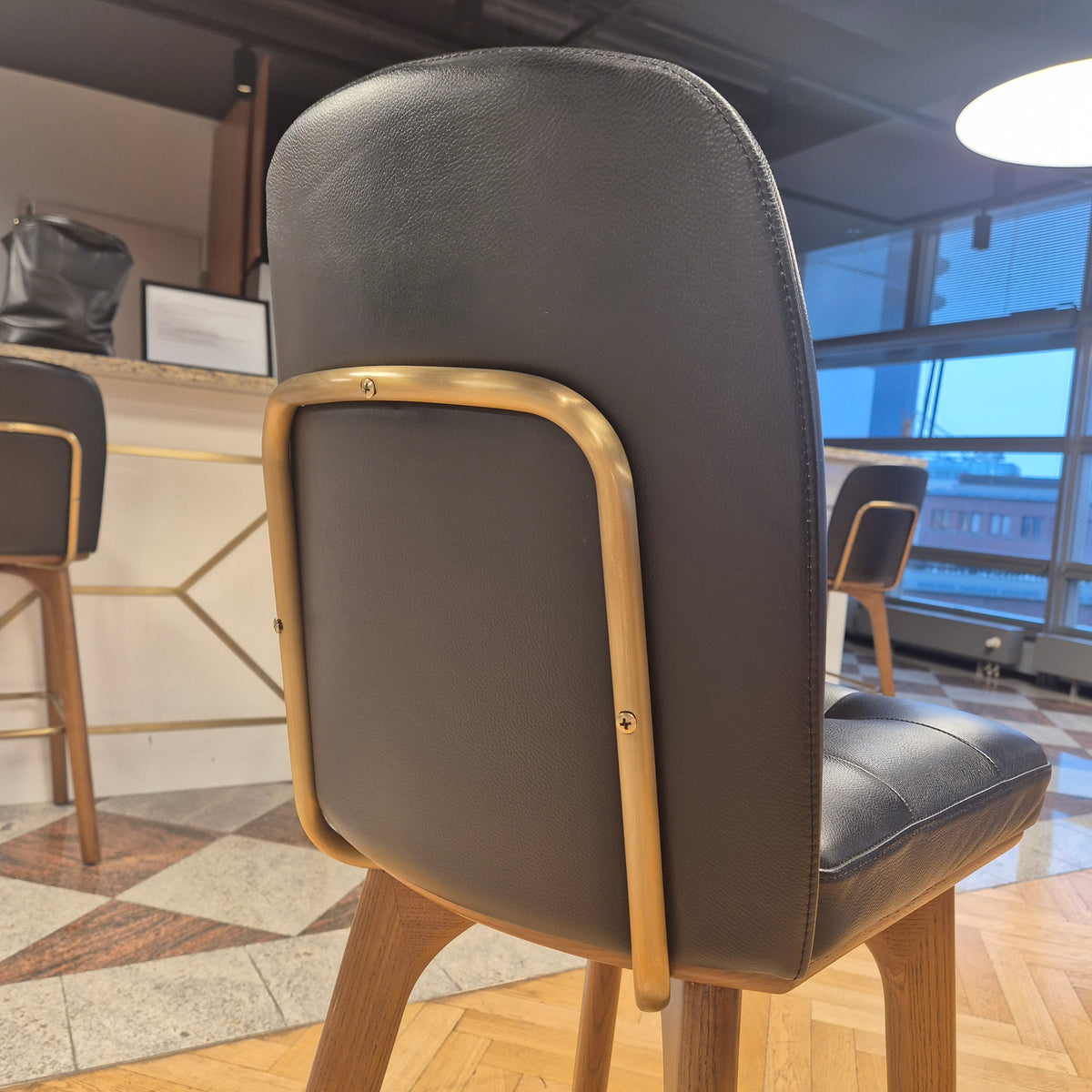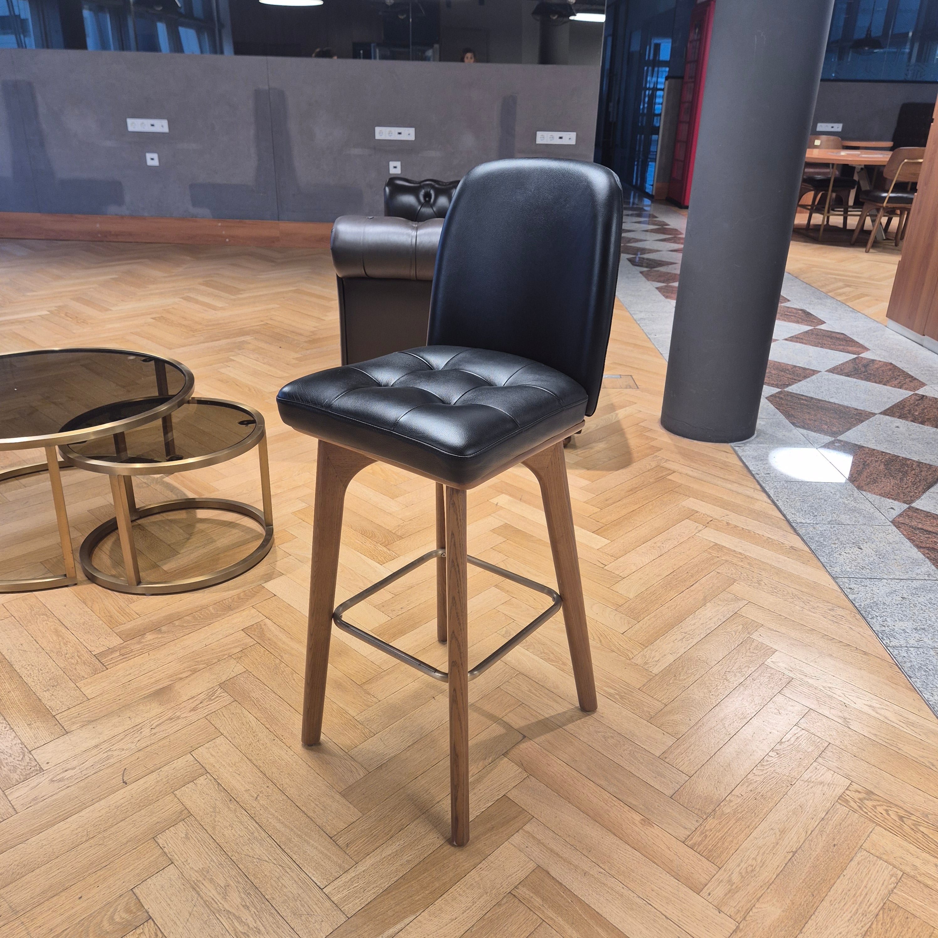 + Gepolsterter Sitz aus schwarzem Kunstleder – pflegeleicht & robust