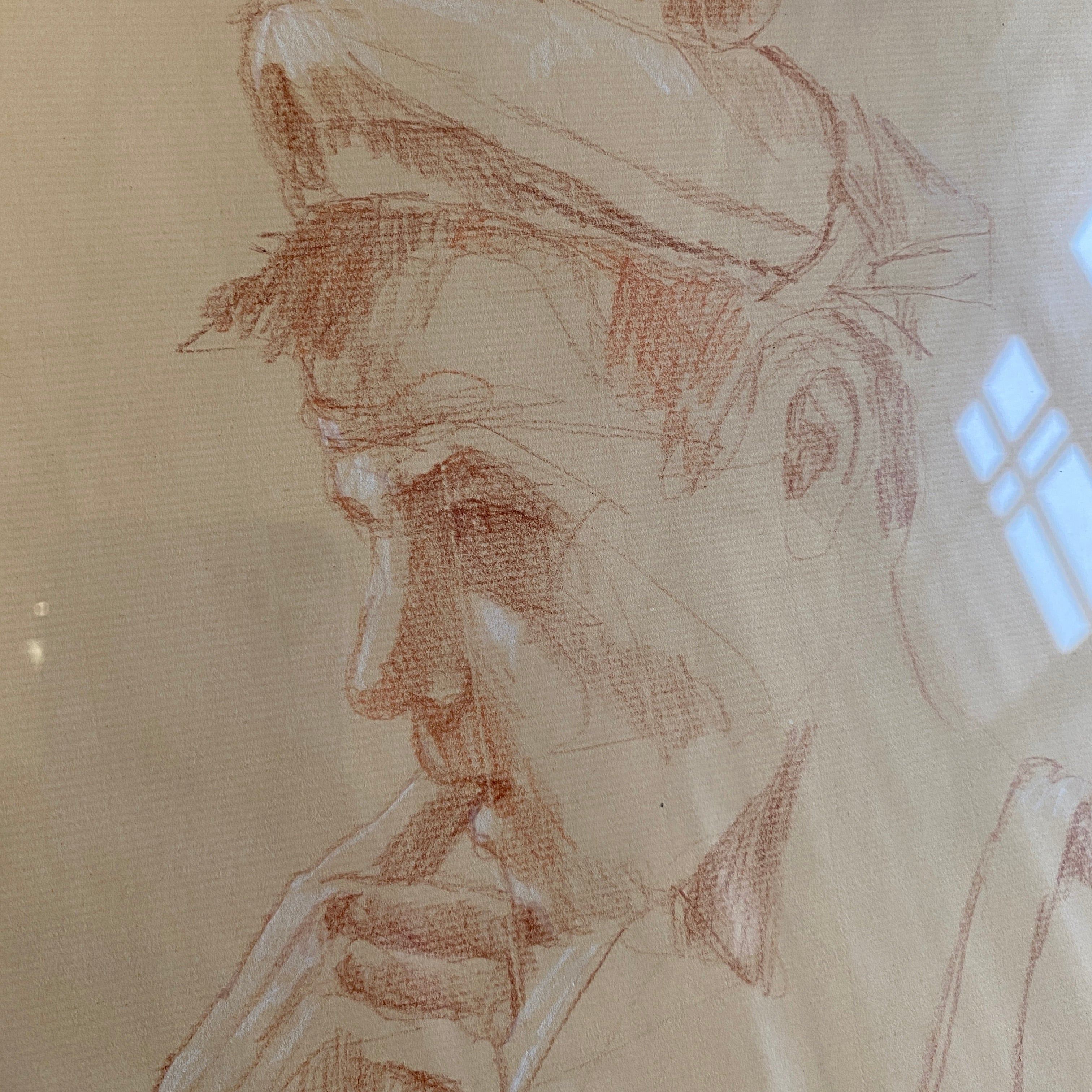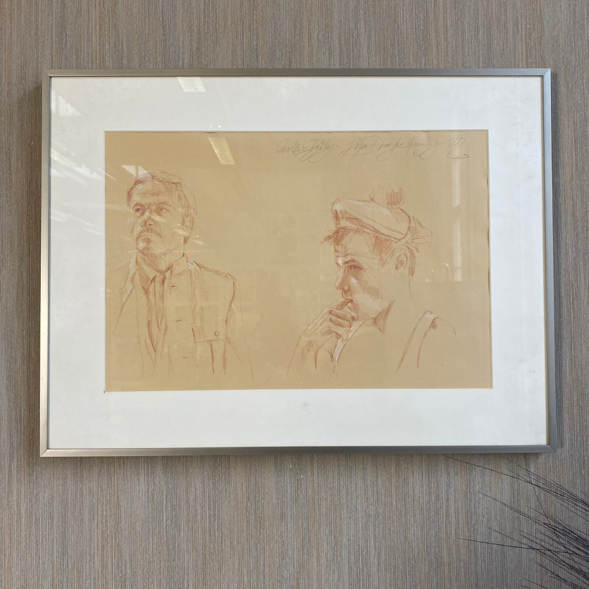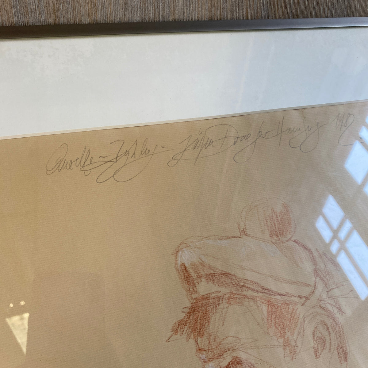 + Gerahmte Zeichnung auf Ingres-Bütten Papier