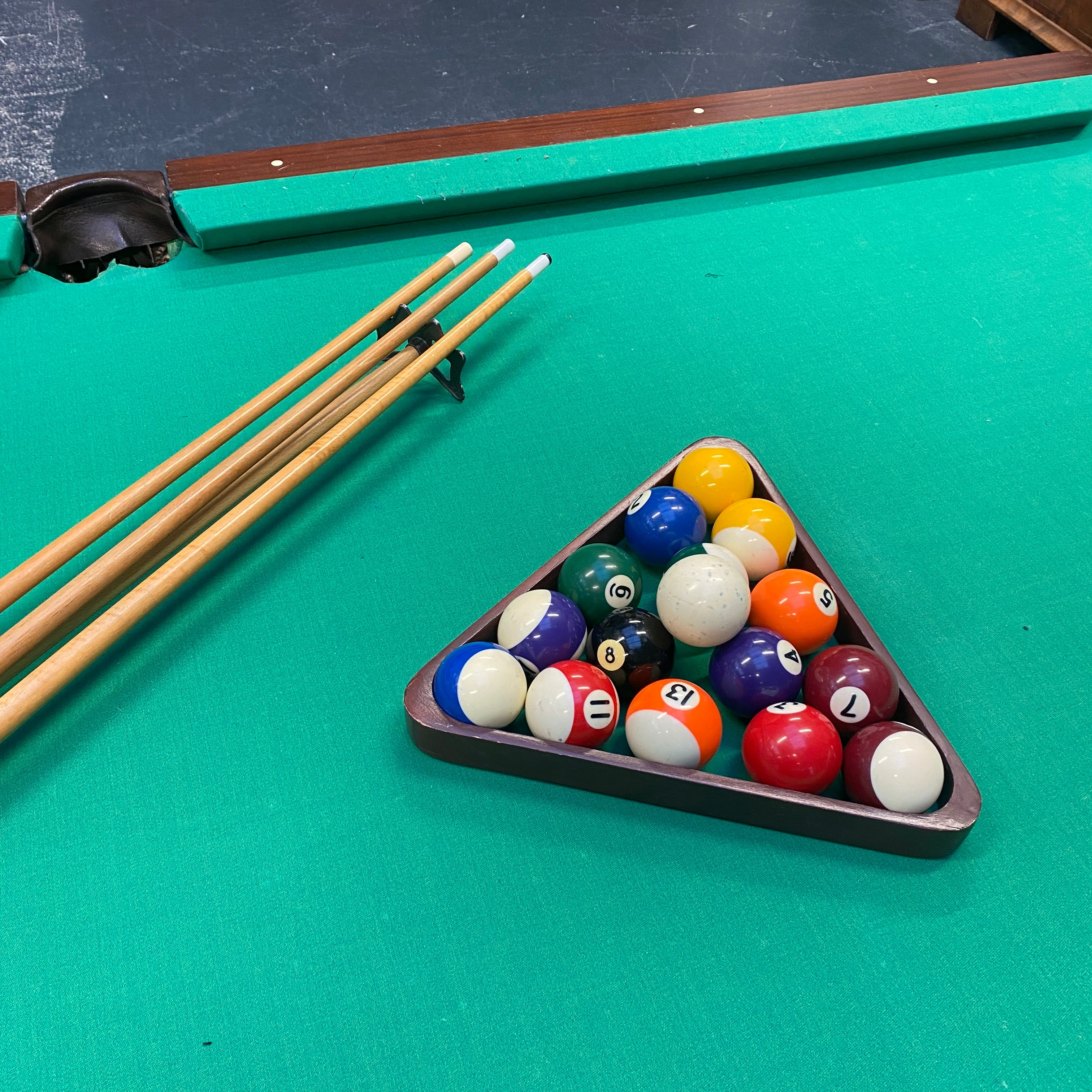 + aus Holz mit Ledereinsätzen