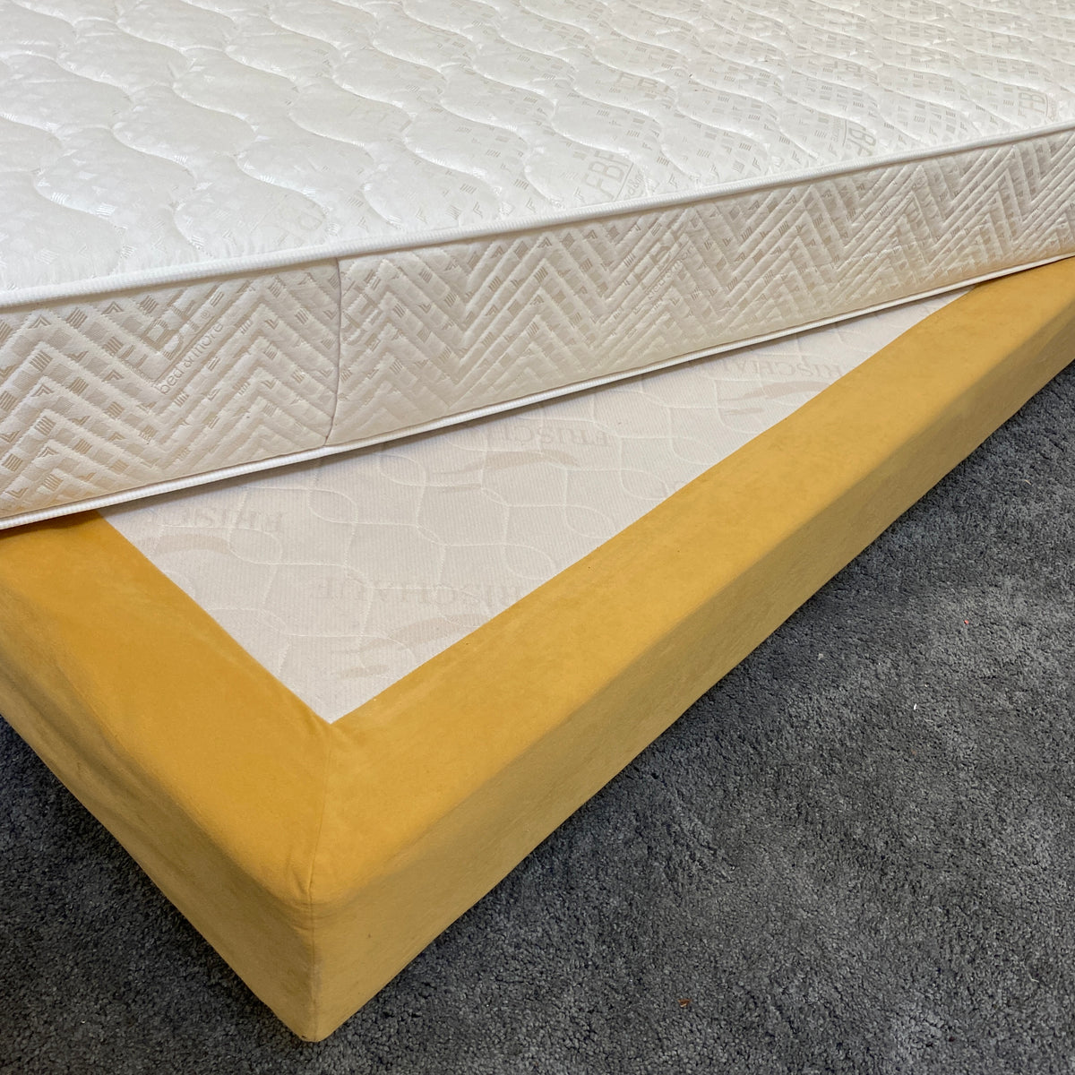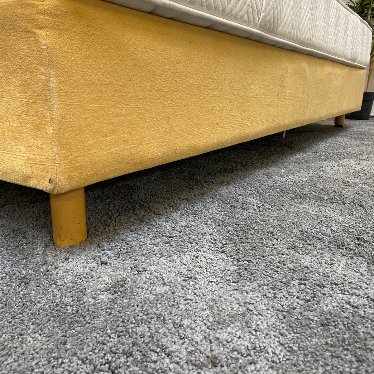 + Stabile Basis mit gelbem, weichem Polsterstoff bezogen