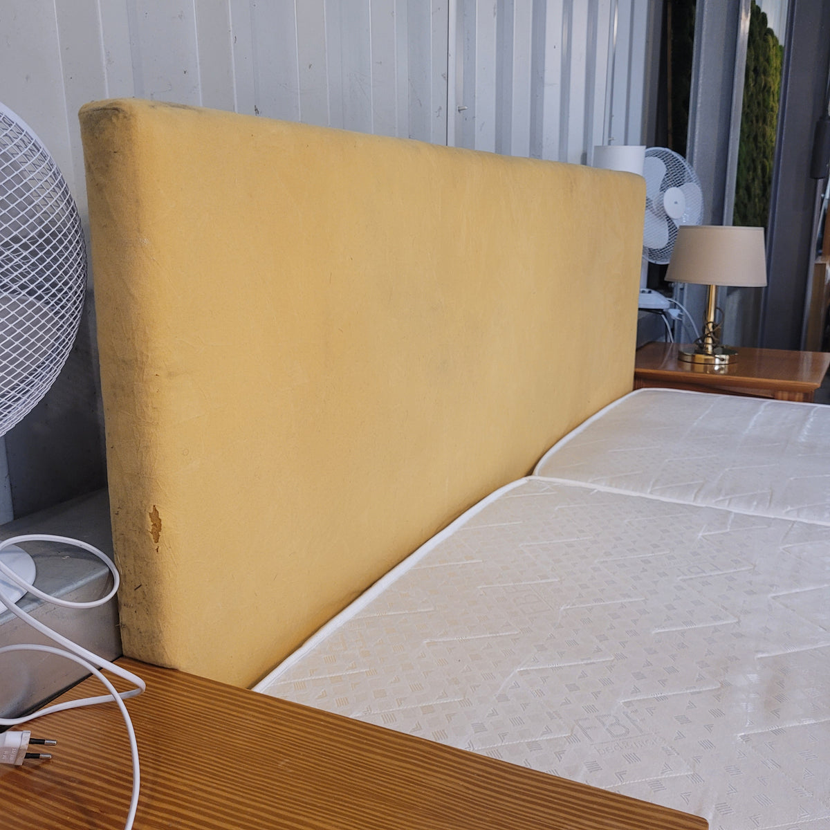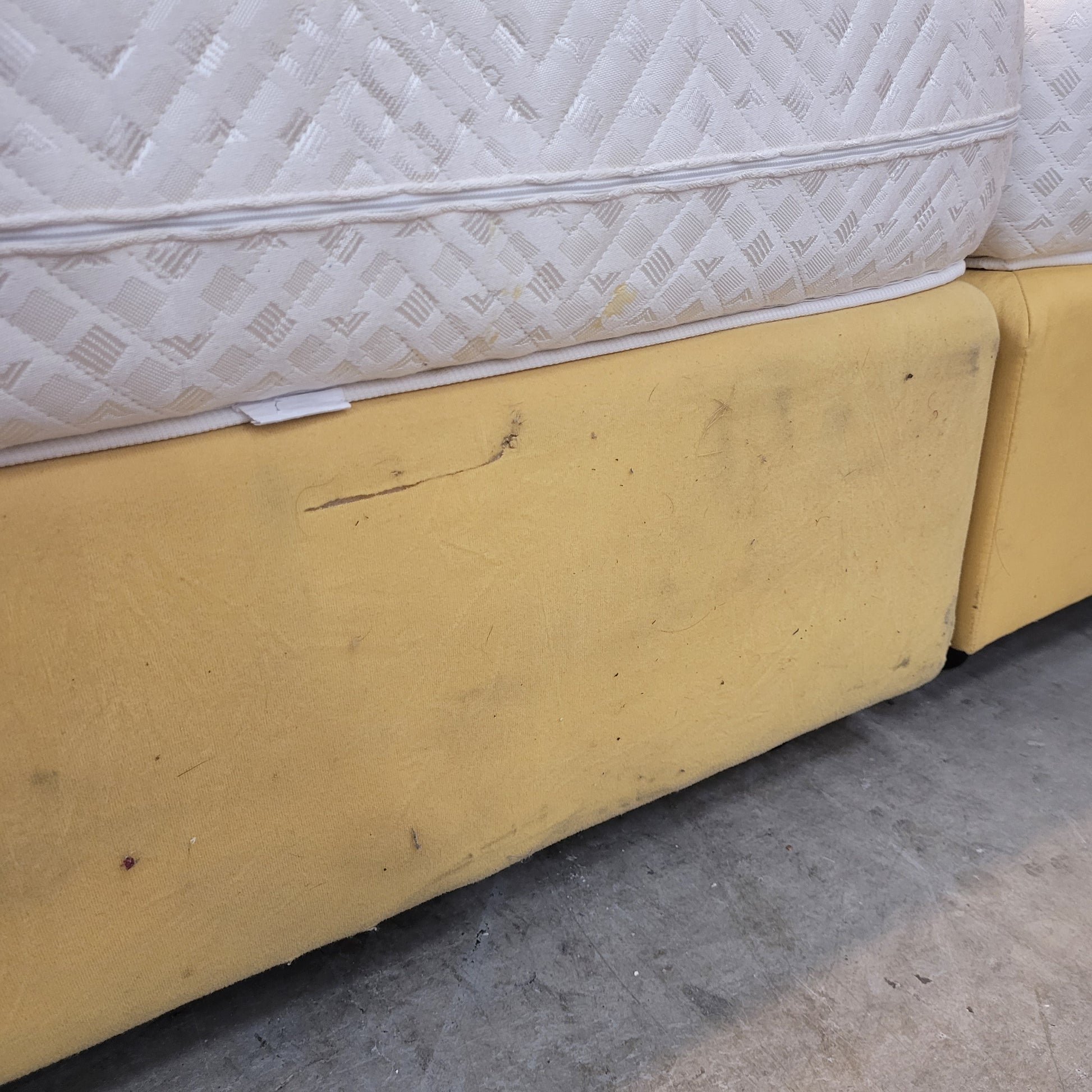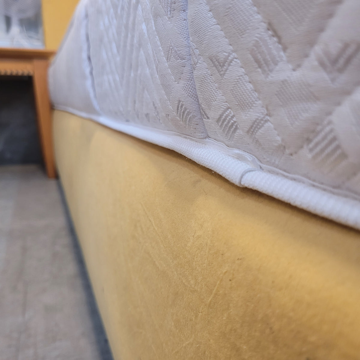 + Stabiler Bettkasten-Unterbau in gelbem Stoffbezug