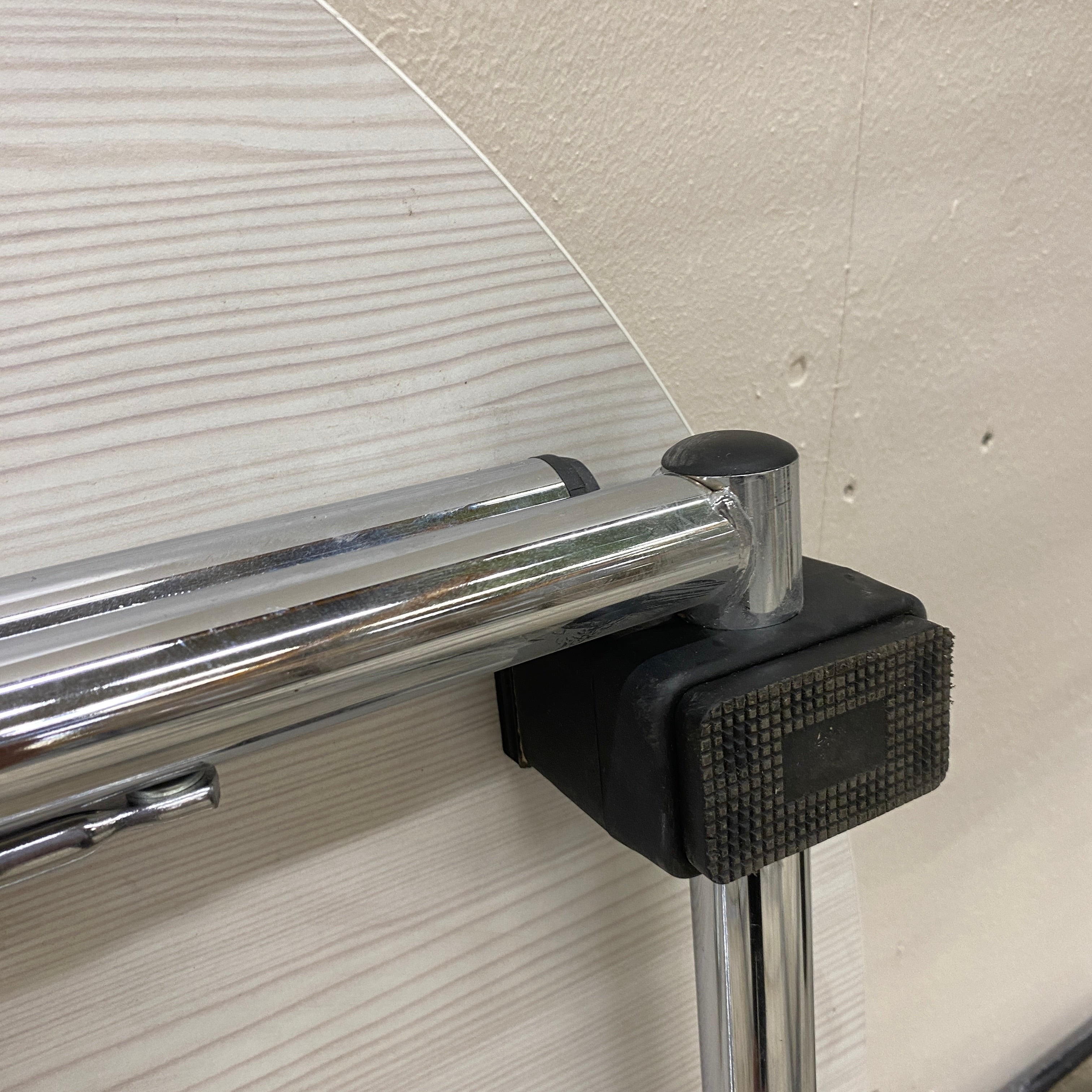 • Material: Heavy-Duty-Verbundplatte mit spezialgehärteter Hotel-Oberfläche (extrem kratzfest und pflegeleicht), Gestell aus massivem, verchromtem Stahl.