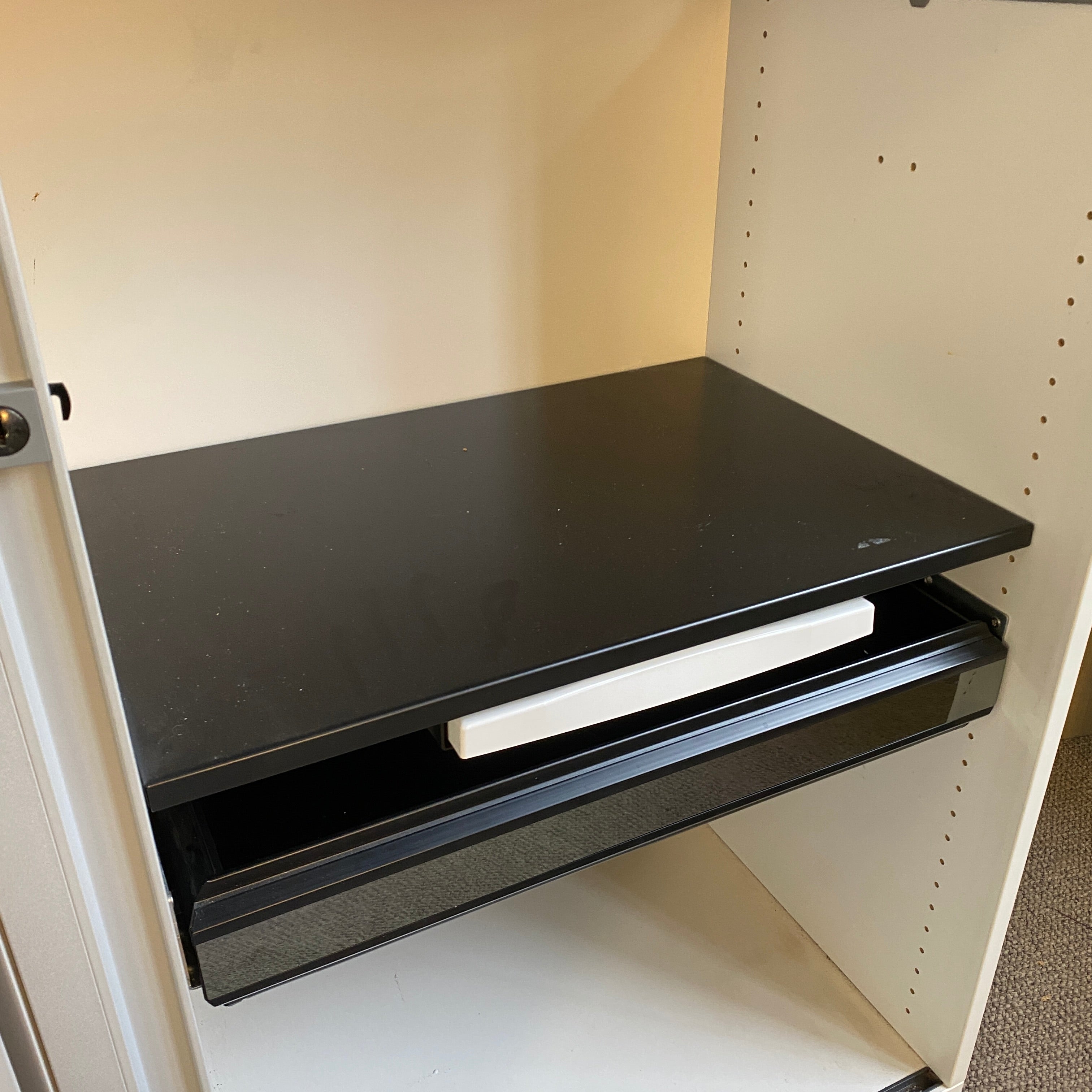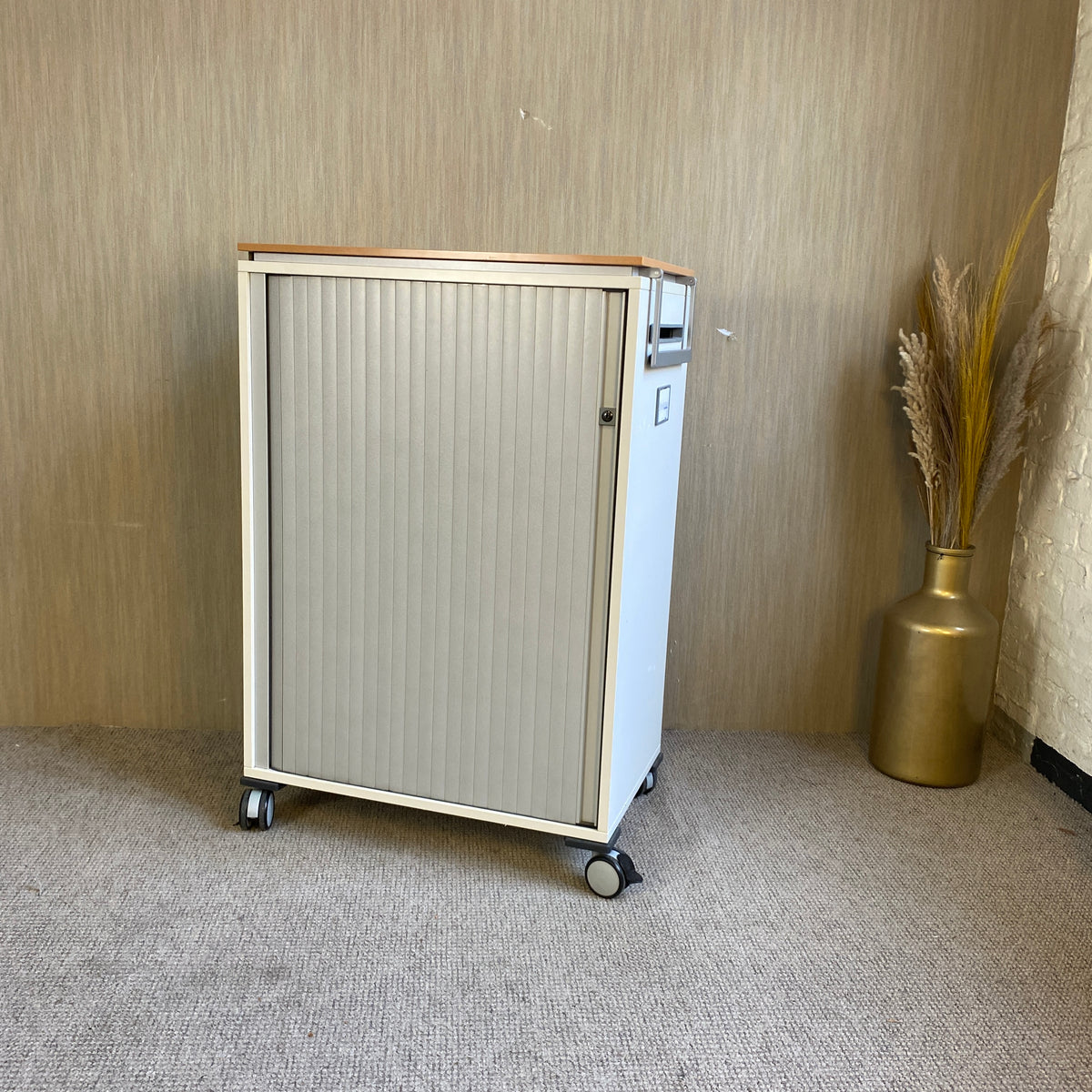 + silberner Holzkorpus mit Lamellentür aus Kunststoff