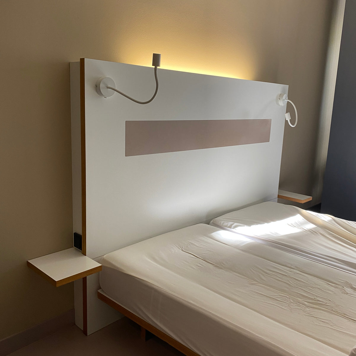 + inkl. Kopfteil mit Nachttisch und Beleuchtung