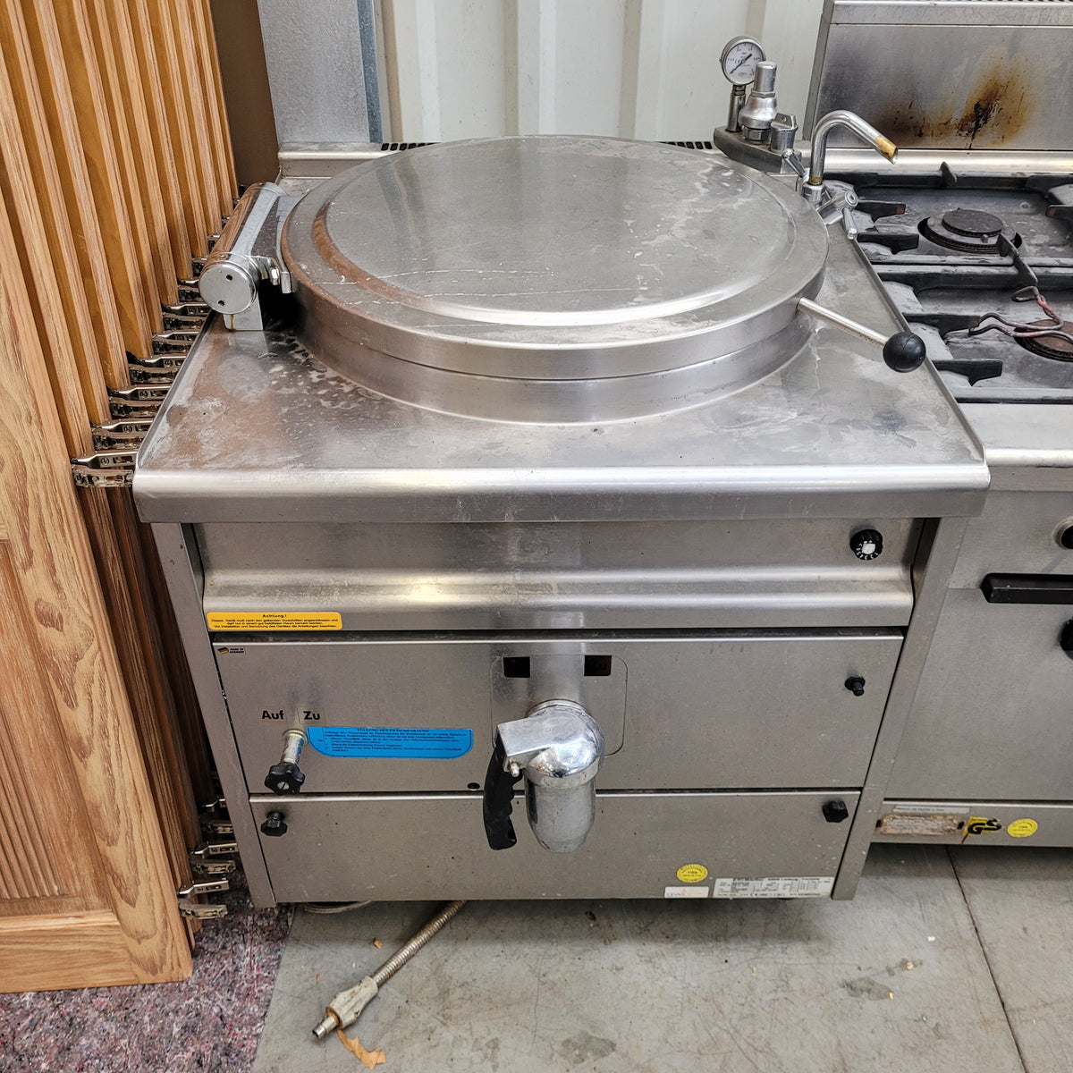 + Hochwertiger Gas-Kochkessel von EKU Metallbau (Modell 850-KIG-100) – gefertigt in Deutschland, bekannt für robuste Gastronomiegeräte.