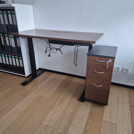 + Inklusive passendem Rollcontainer in Nussbaum – Stauraum direkt am Arbeitsplatz, aufgeräumtes Büro