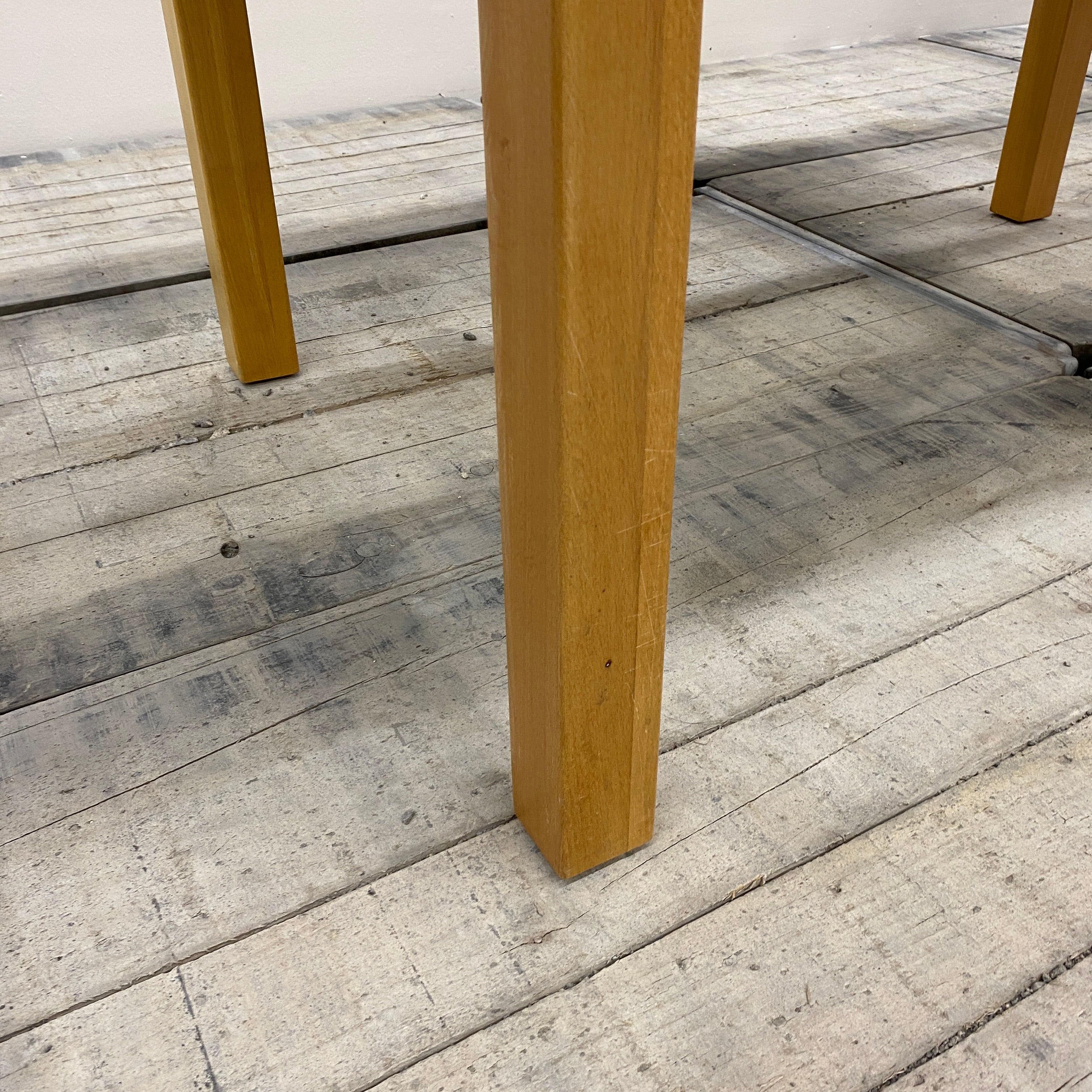 • Zustand: Gebraucht. Solide Substanz mit sichtbaren Gebrauchsspuren auf der Platte (kleine Kerben/Kratzer), die den rustikalen Charakter unterstreichen.