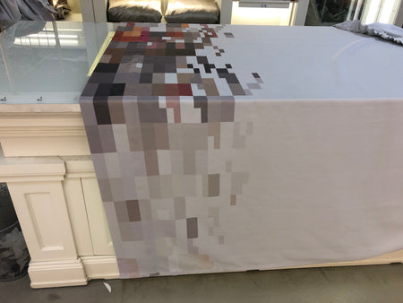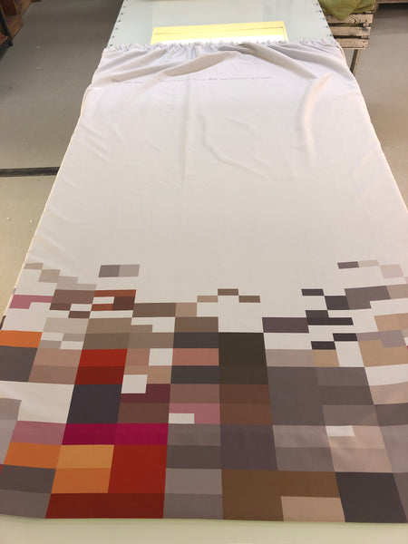 + Farbe: hellgrau mit Schrift oben und buntem Muster unten