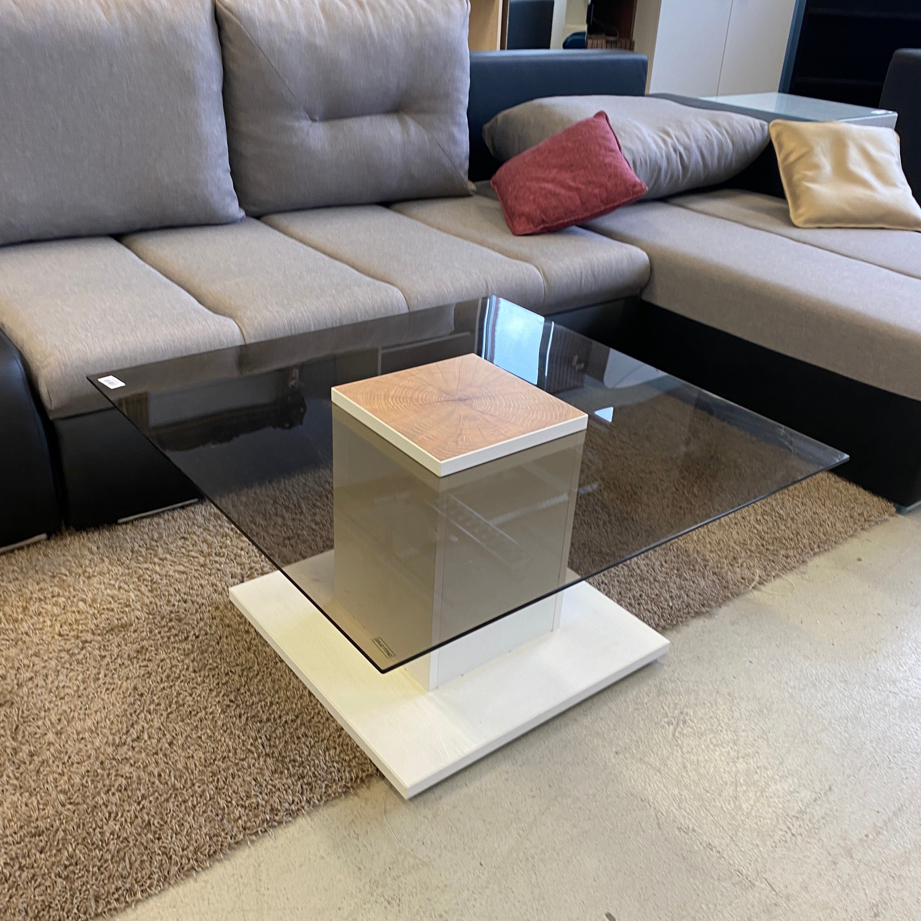 + Eleganter Couchtisch mit großer, getönter Safety-Glasplatte