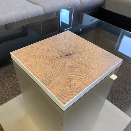 + Stabiler Mittelblock mit dekorativem Holzring-Muster auf der Oberseite