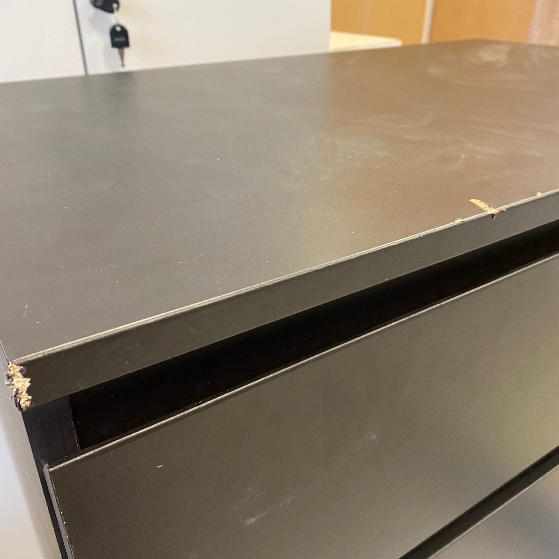 + Funktional voll nutzbar trotz optischer Mängel – ideal als praktische Stauraumlösung.