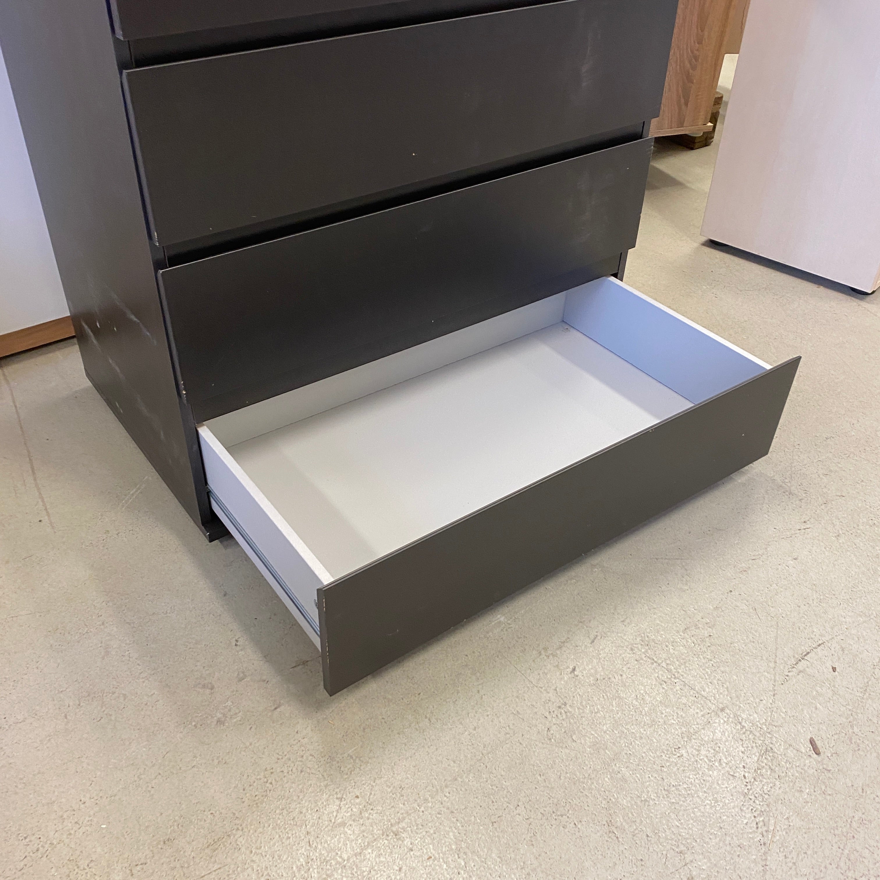 + Moderne Kommode in Dunkelbraun mit 4 geräumigen Schubladen – ideal für Schlafzimmer, Flur oder Wohnzimmer.