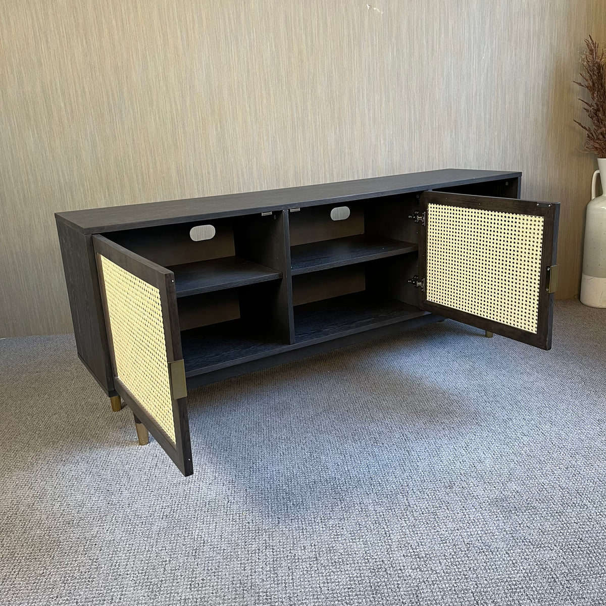 + 2 Türen mit hellem Rattan