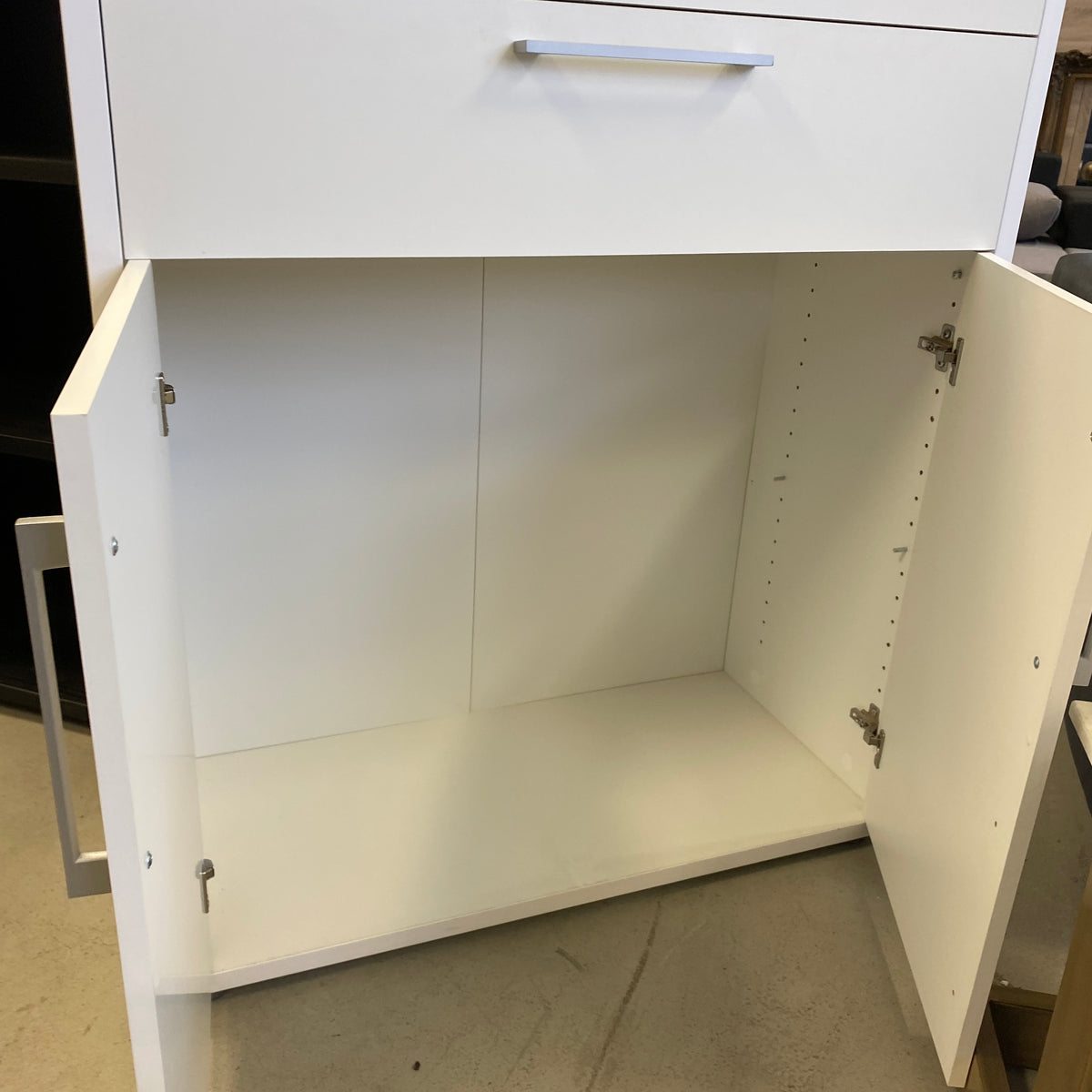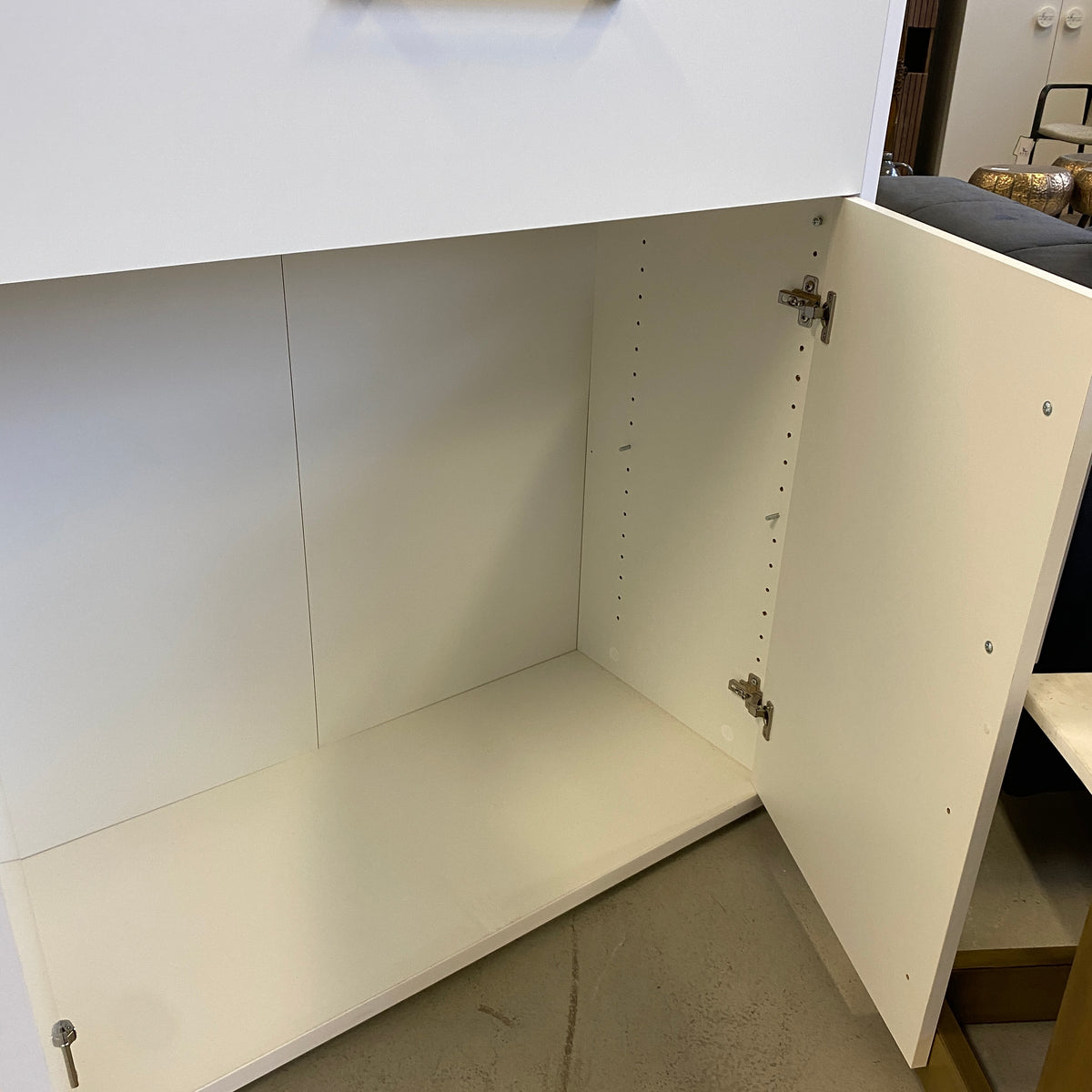 + Geräumiges Doppeltüren-Fach unten – flexible Einlegeboden-Option sichtbar