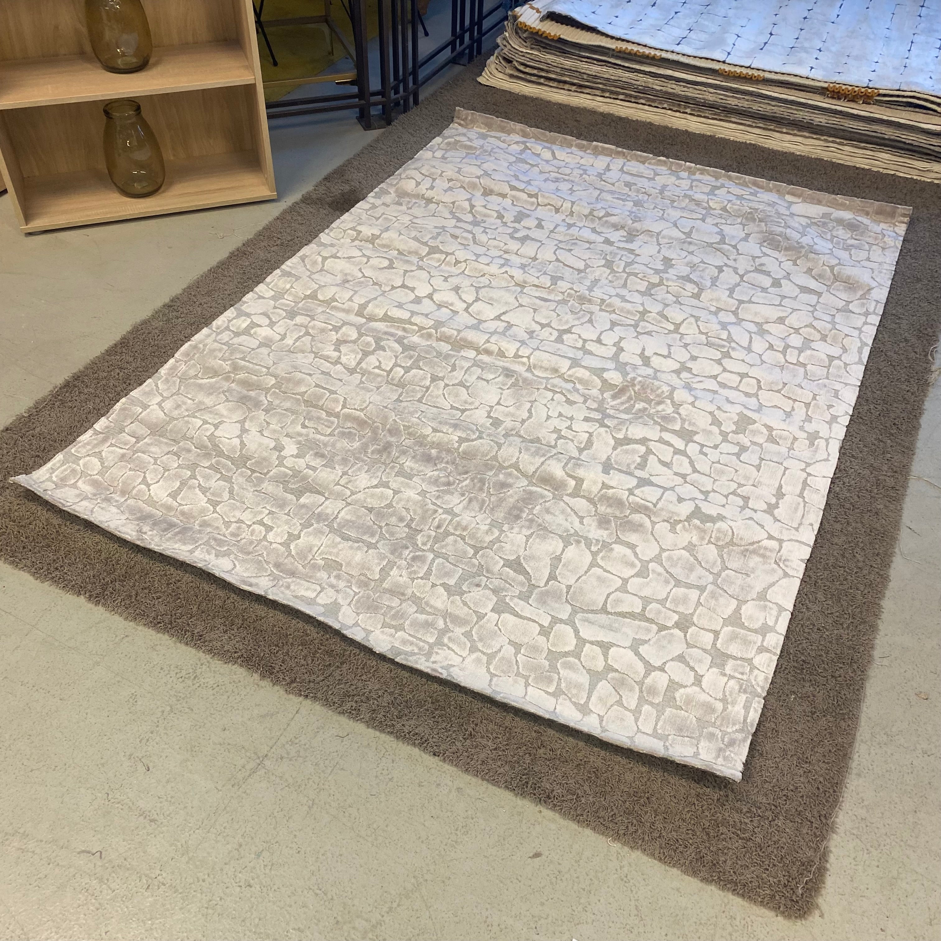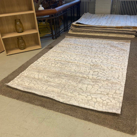 + Dekorativer Bodenläufer in hellem Beige mit moderner Steinoptik.