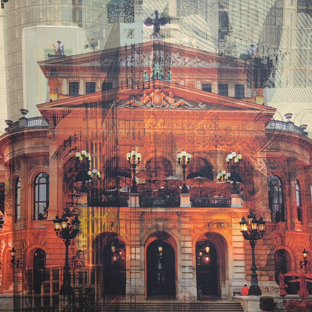 + Großformatiges Leinwandbild mit Motiv der Alten Oper Frankfurt im Urban-Art-Stil