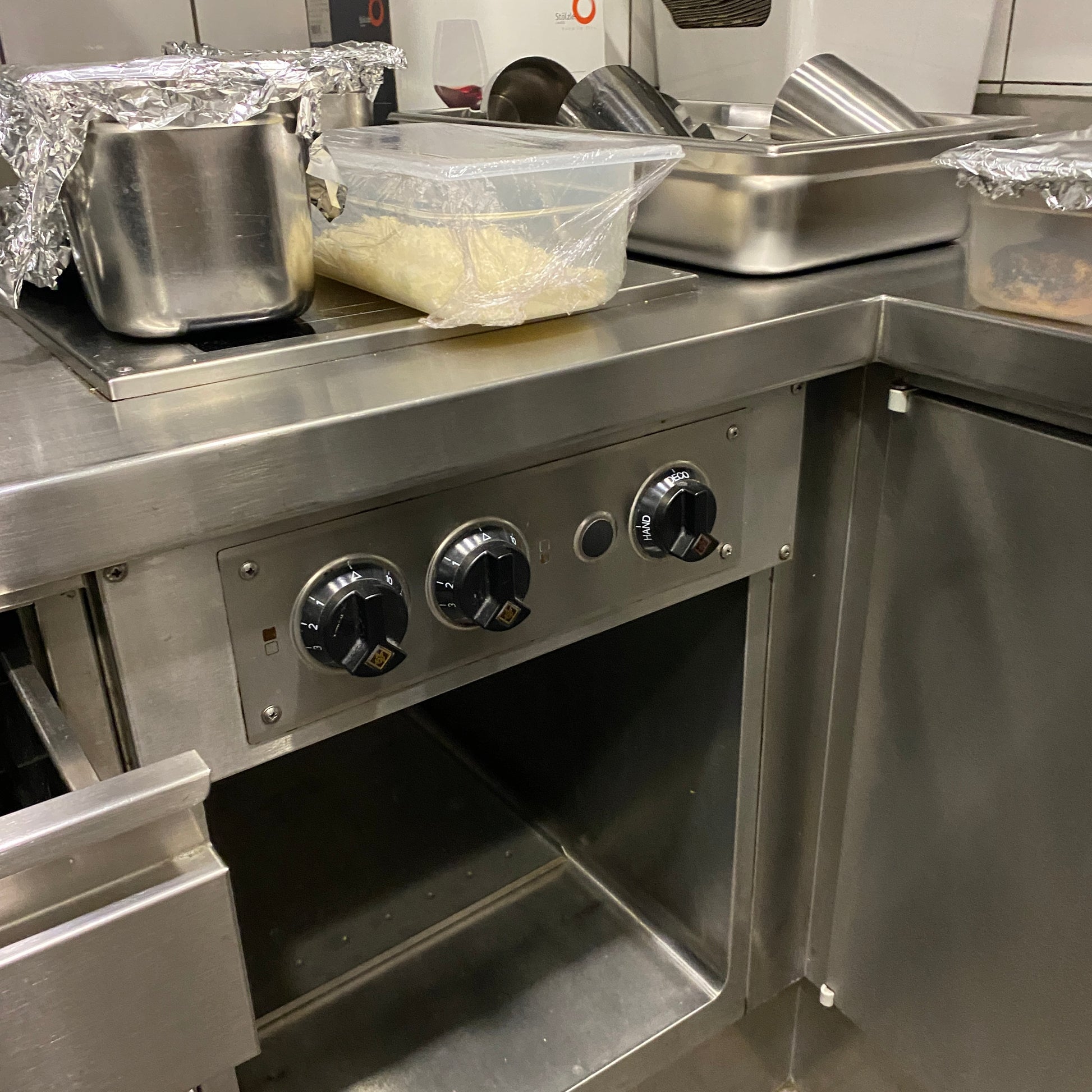+ Hochwertige Edelstahl-Arbeitszeile aus professioneller Hotelküche