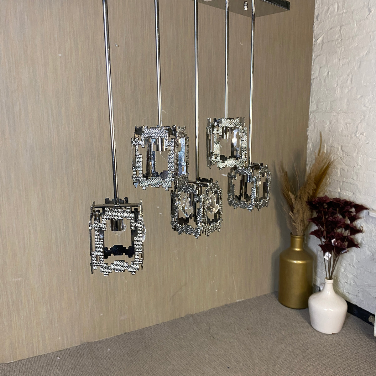 + Elegante Pendelleuchte in hochwertiger Chrom-Optik