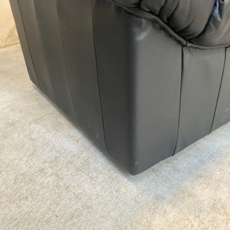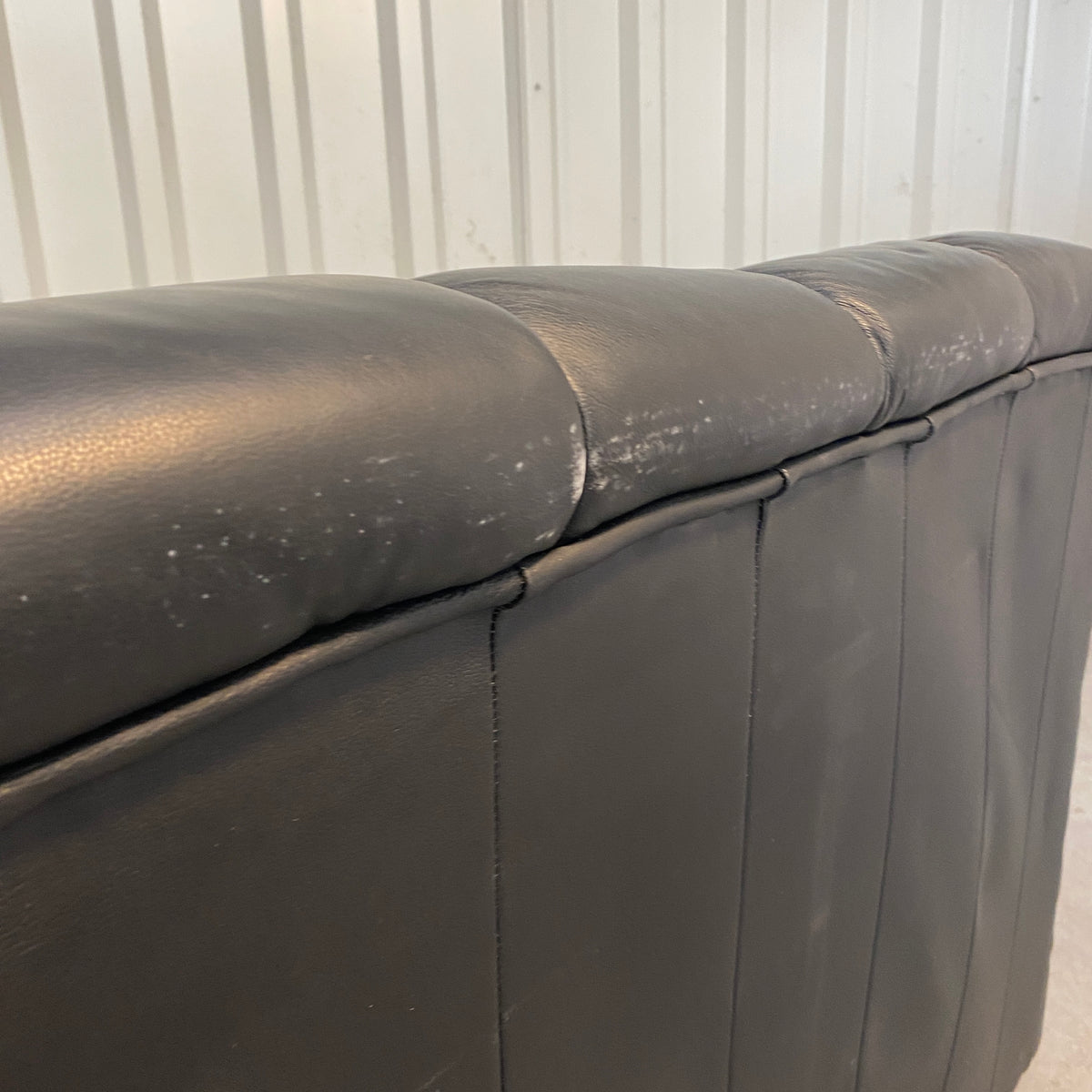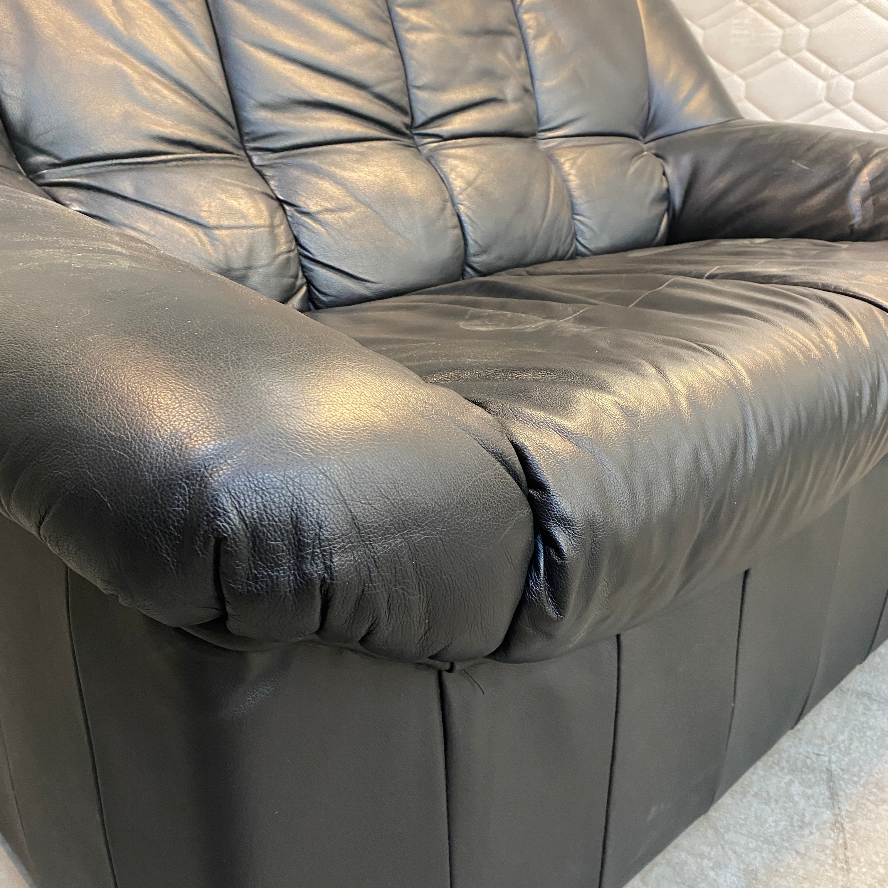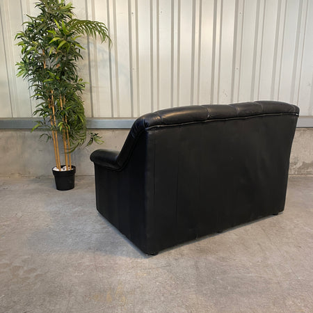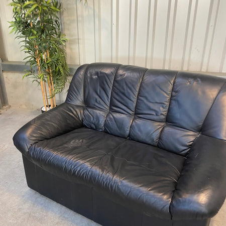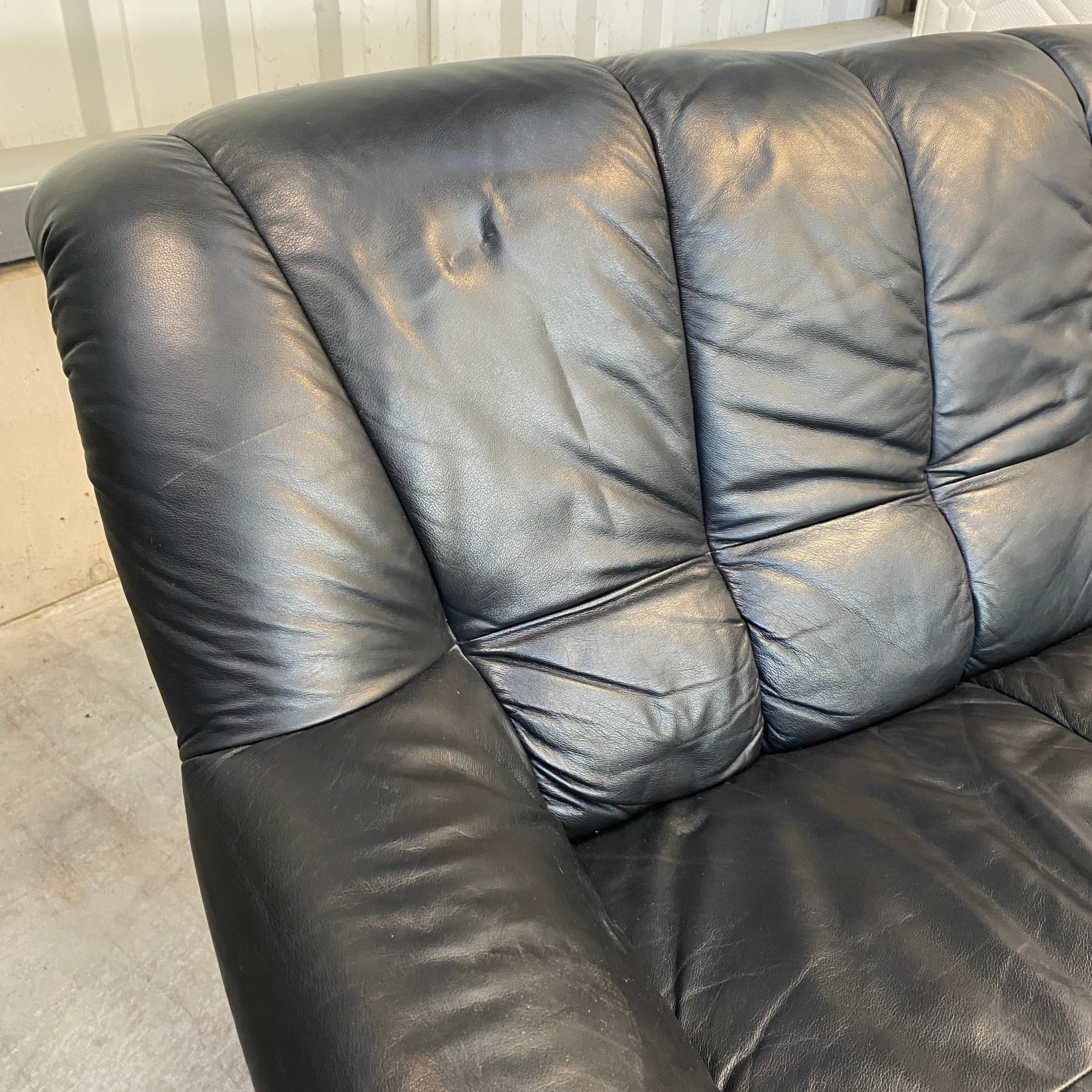 + Komfortables Zweisitzer-Sofa mit schwarzem Lederbezug.