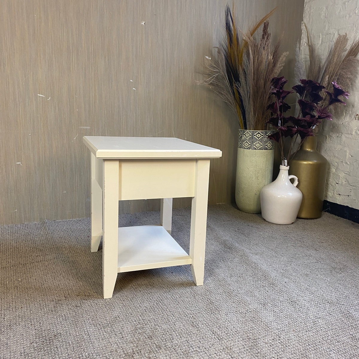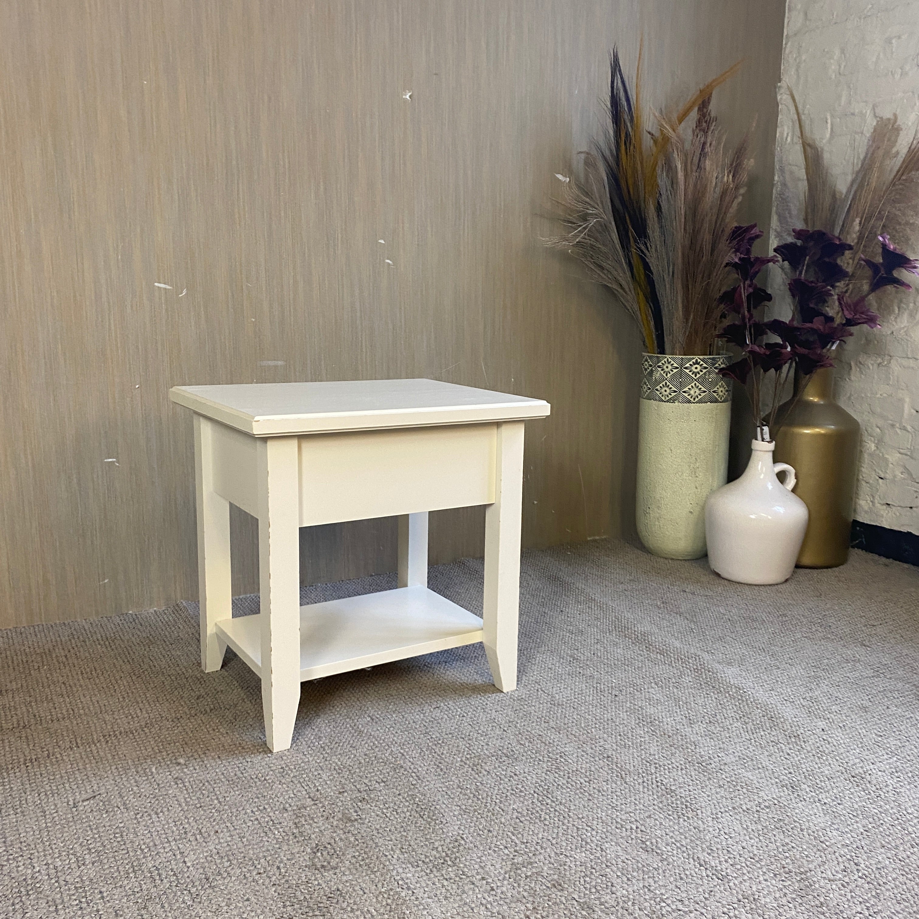 + Nachttisch mit kompakter, quadratischer Form