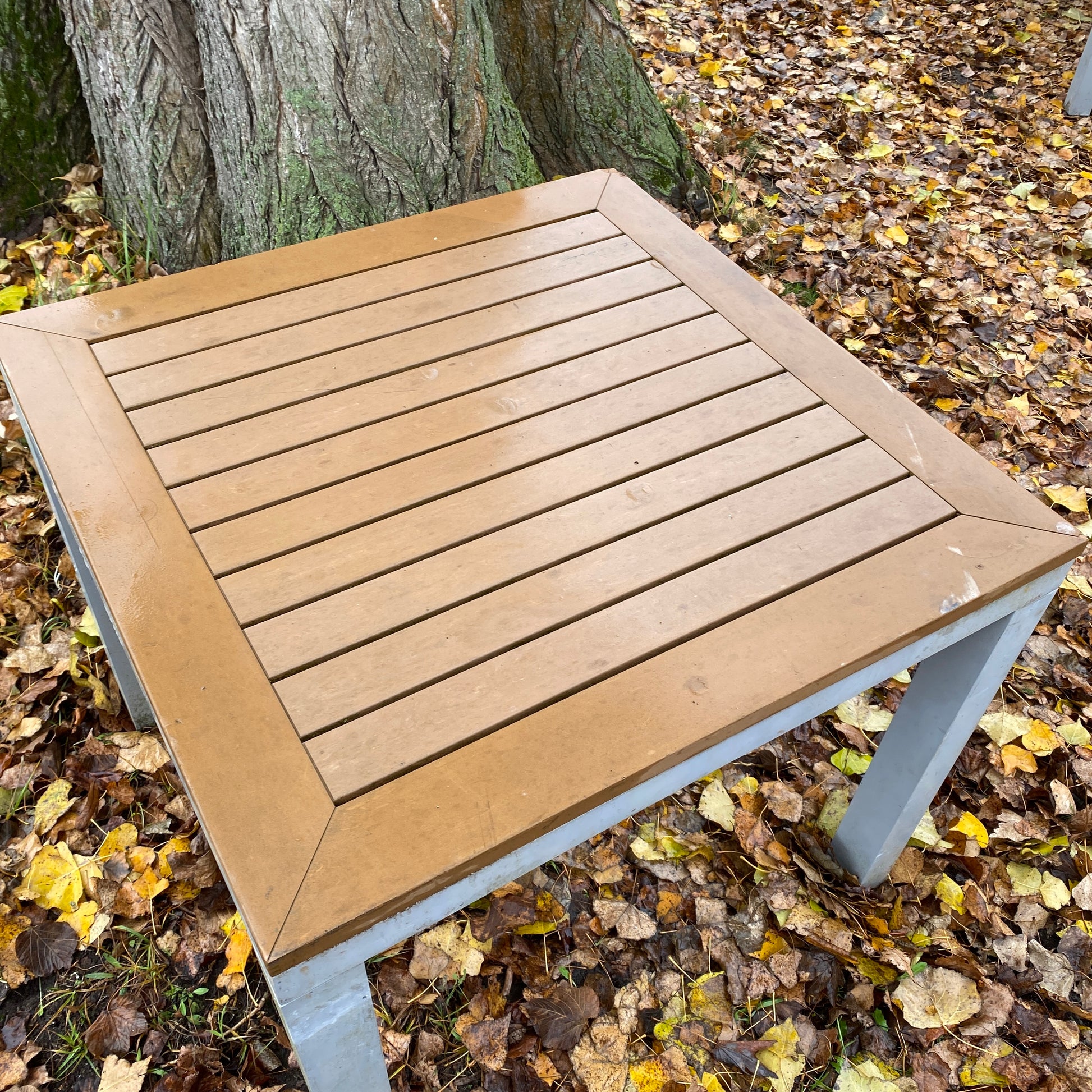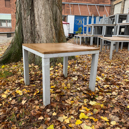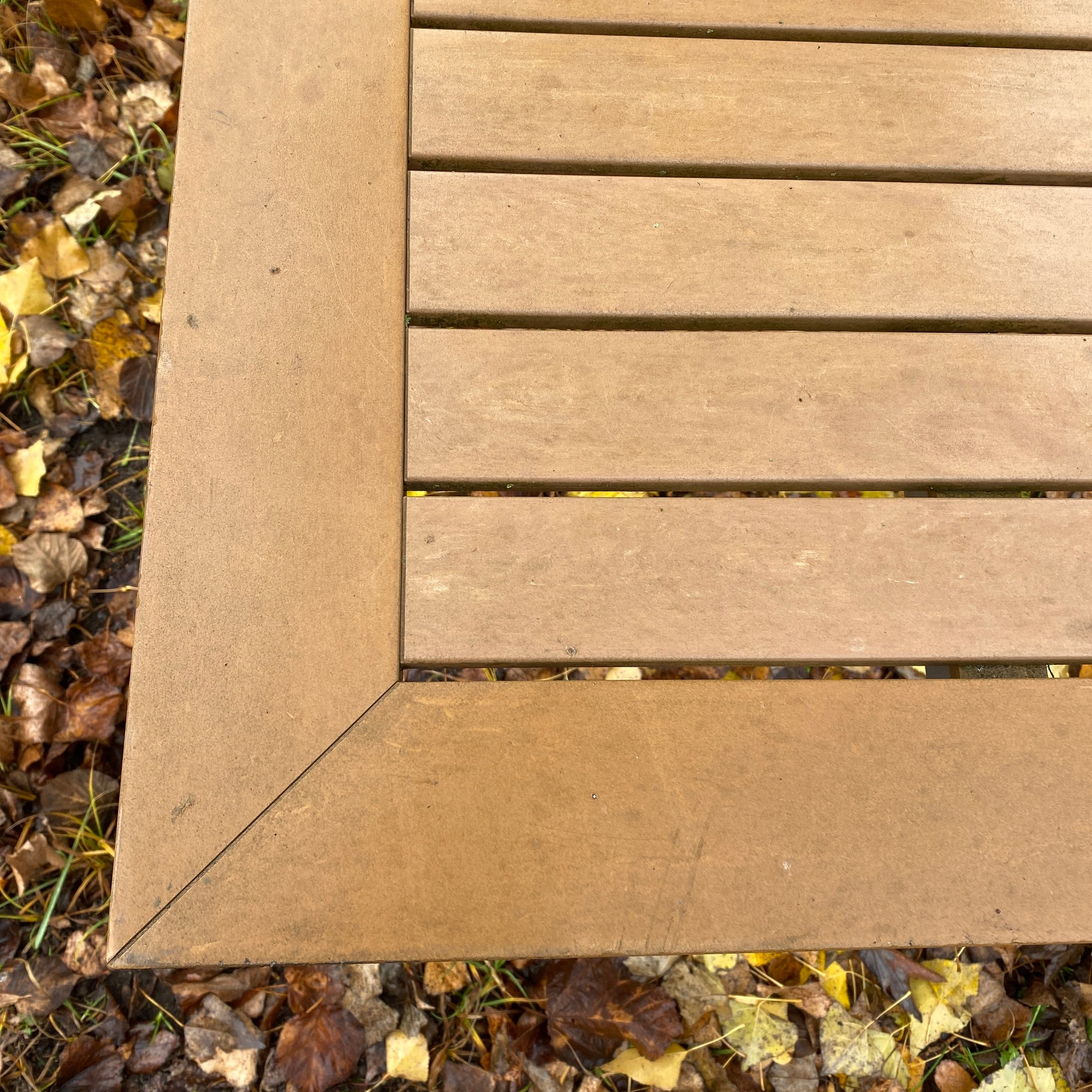 + Quadratische Tischplatte aus Holzlatten in natürlicher Optik – ideal als Beistell- oder Balkontisch