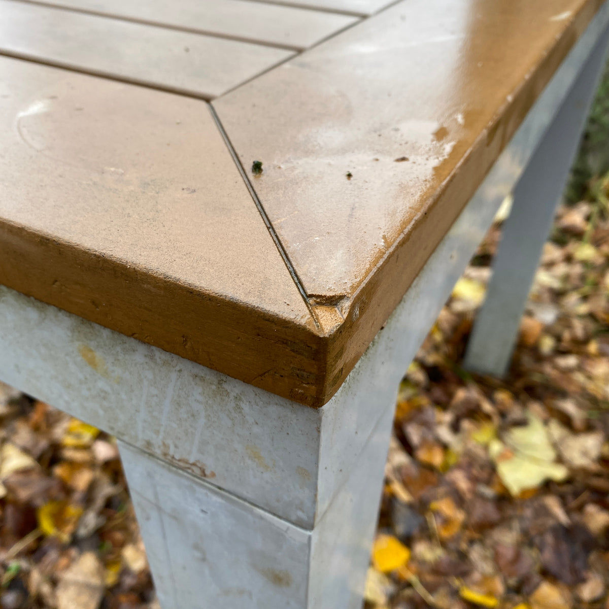 + Pflegeleichte Materialien – Aluminium rostfrei, Holzlatten können nachgeölt werden
