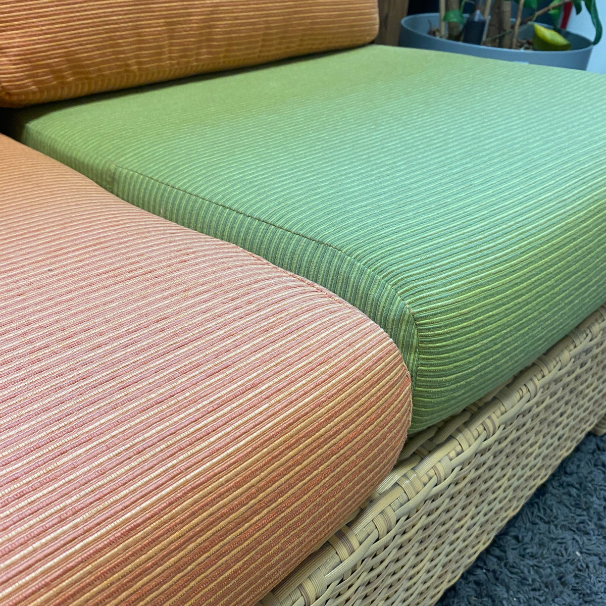 + Bezüglich der Farben der Kissen: die Kissenfarben sind Orange und grün und variieren in der Verteilung.