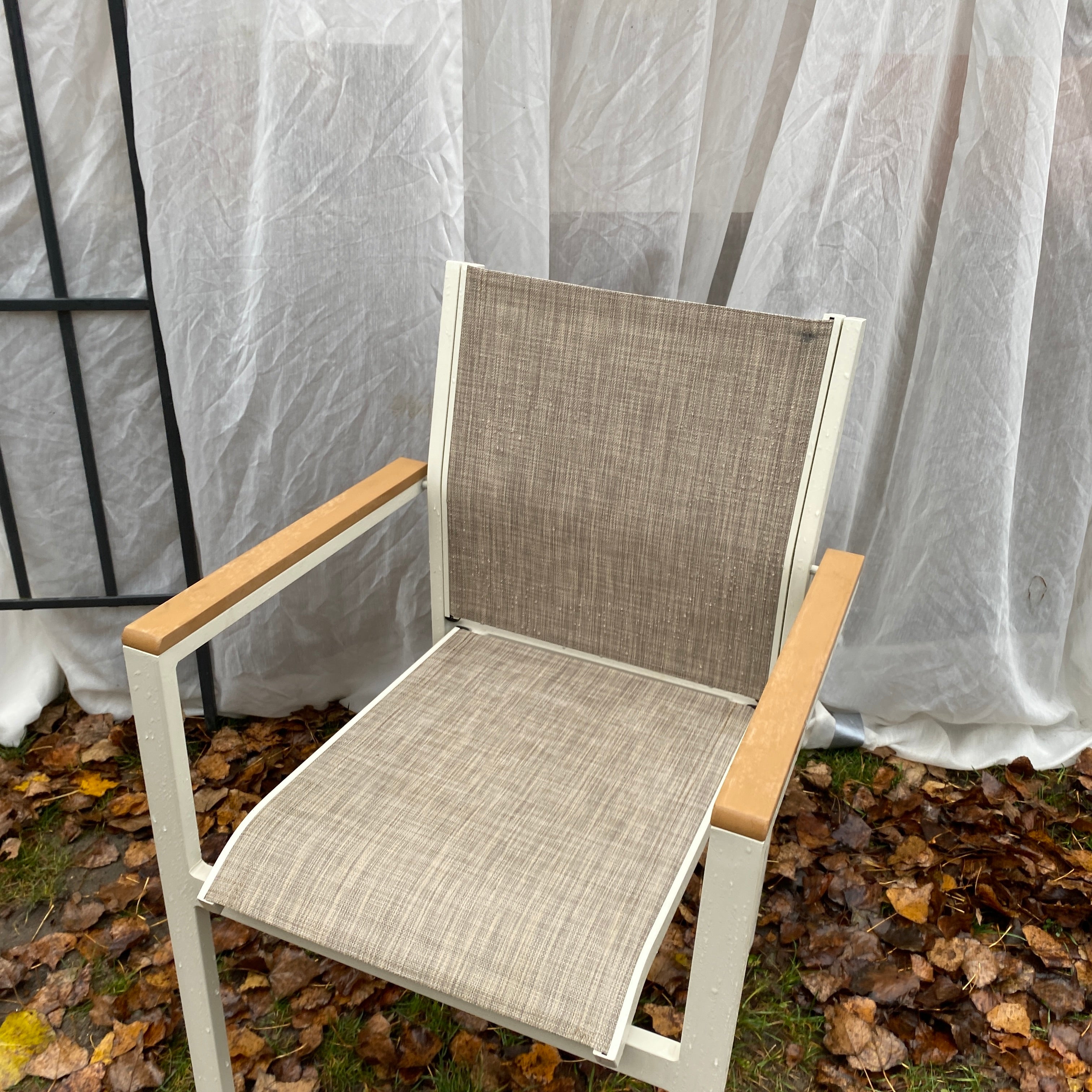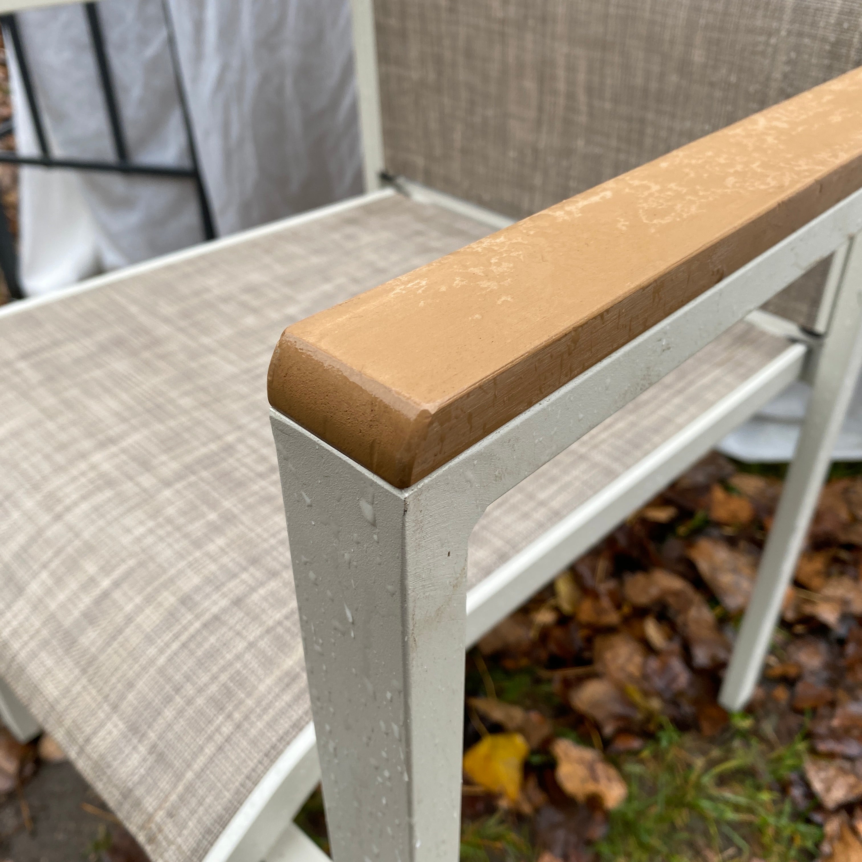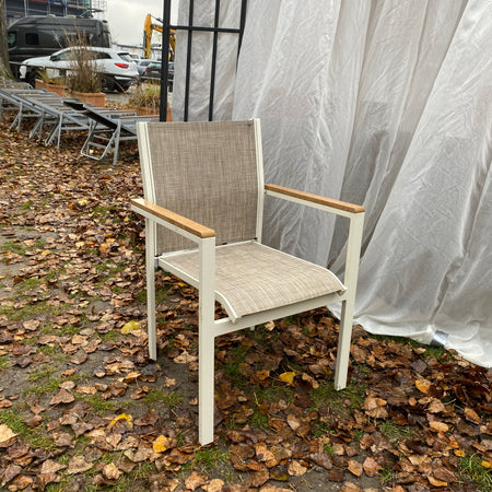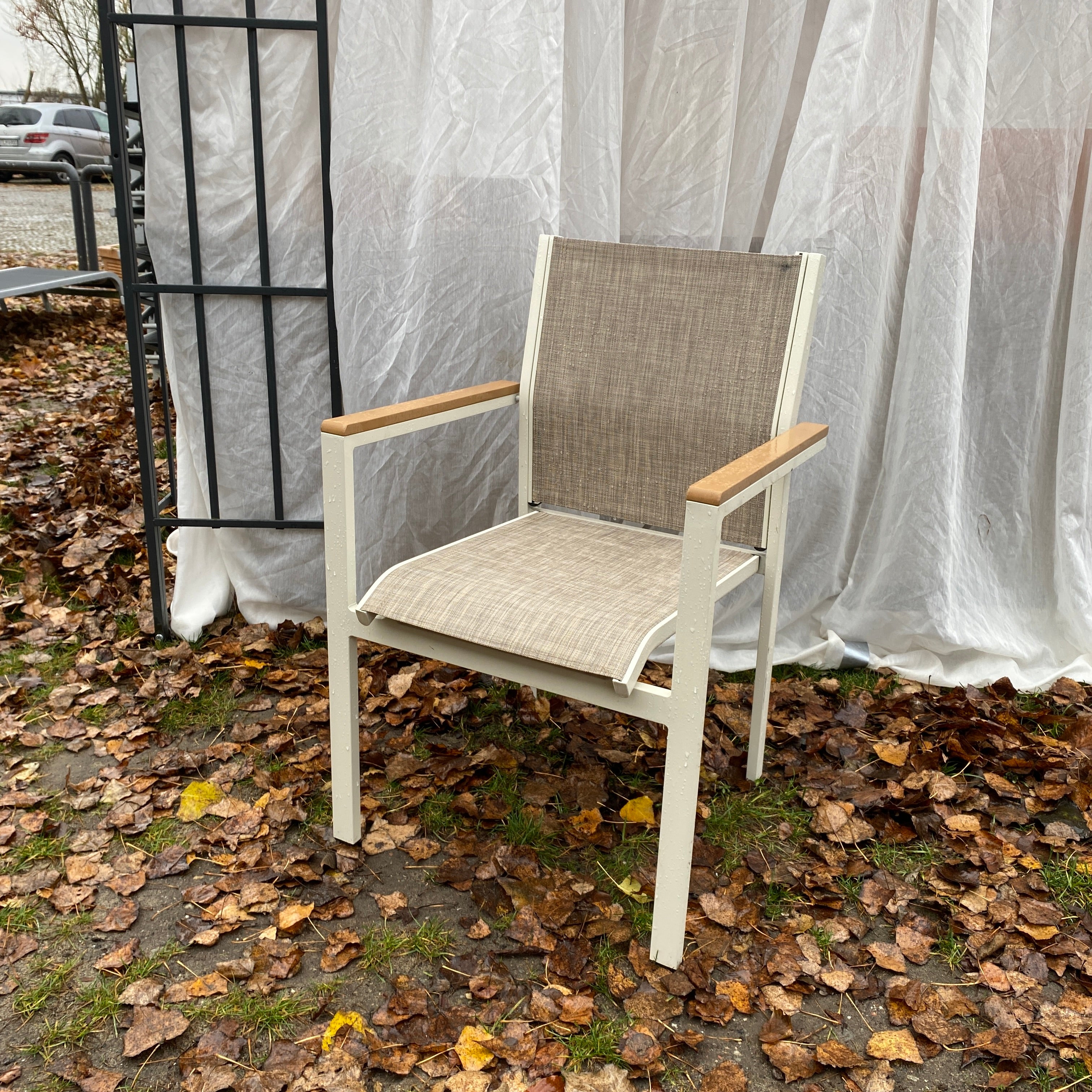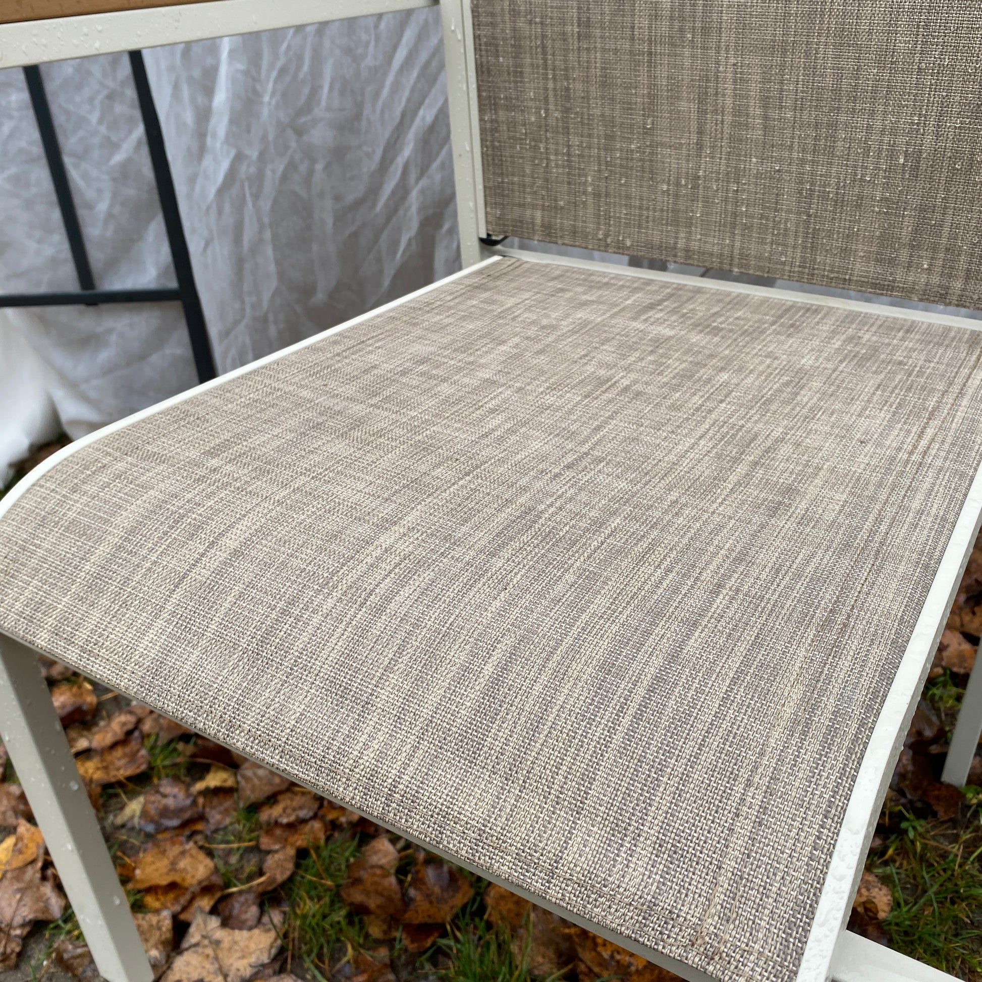 + Sitz- und Rückenfläche aus beigem Textilene-Gewebe – atmungsaktiv, schnelltrocknend & sehr bequem